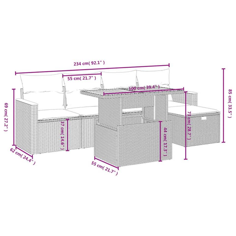 Conjunto de Sofá de Jardín de Ratán Gris con Almacenamiento, Muebles de Exterior de 4 Plazas, Diseño Contemporáneo