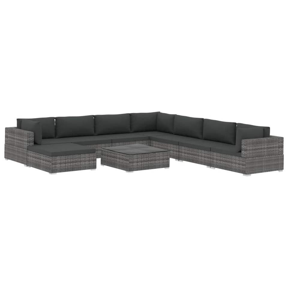 Conjunto de Muebles de Jardín de Ratán Gris para Patio, 9 Plazas, Diseño Contemporáneo