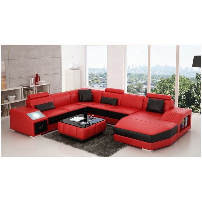 Conjunto de sofás en forma de U para el hogar, Color gris/Rojo/Negro Blanco, personalizado, de cuero genuino, para sala de estar