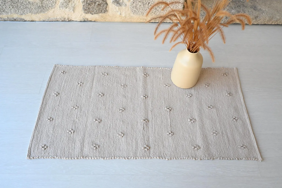Alfombra gris Alfombra de mesa de comedor Alfombra de área de algodón Piso Dormitorio Alfombra hecha a mano para interiores y exteriores Compra a granel