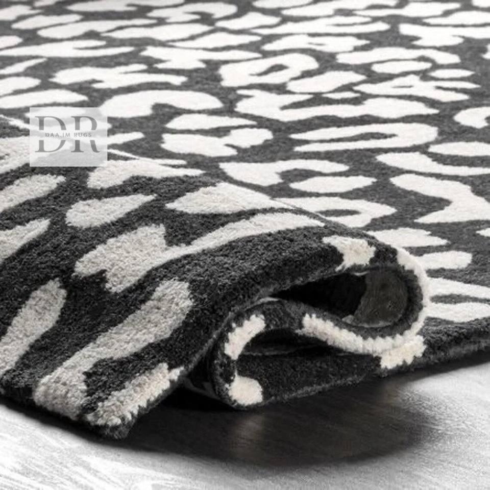 Alfombra de lana moderna de alta calidad con mechones a mano, tamaño personalizado, diseño de leopardo gris y blanco para comedor, salón, suelo