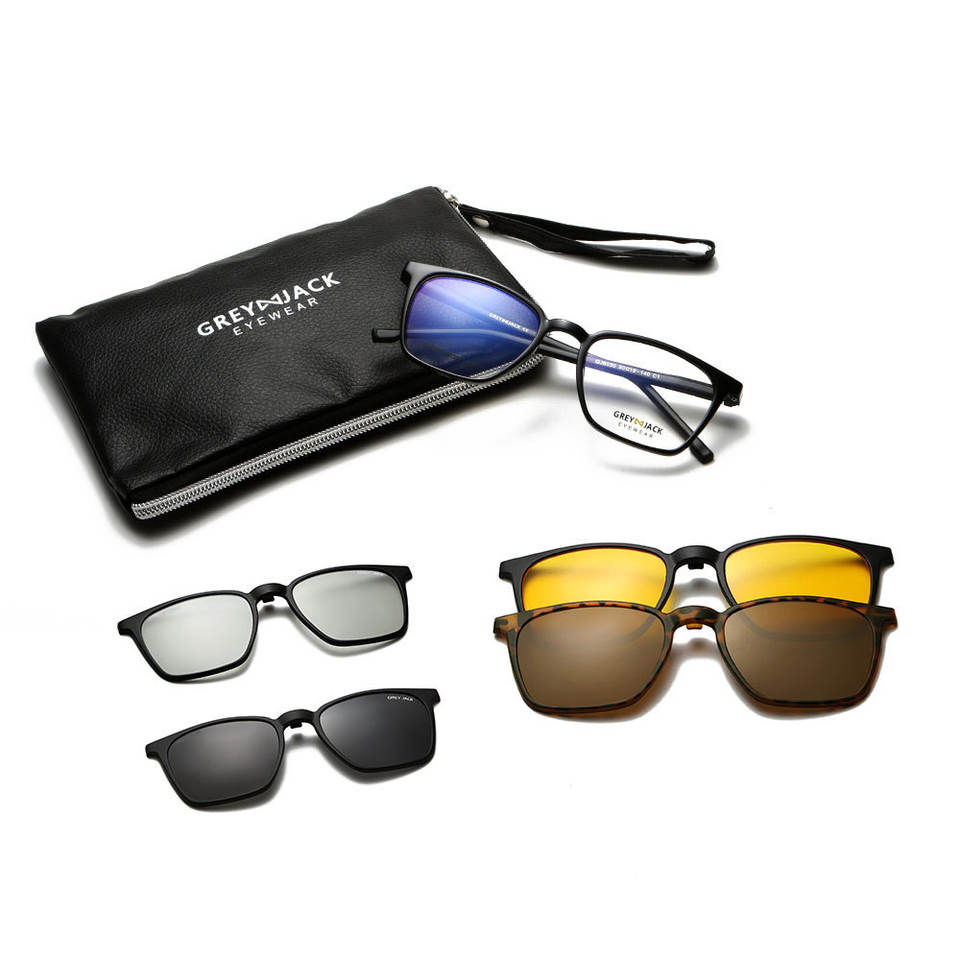 Gafas de Sol Magnéticas Greyjack 4 en 1, Montura TR90, Polarizadas UV400, Unisex, Lentes Cuadradas Tipo 3, Ligeras