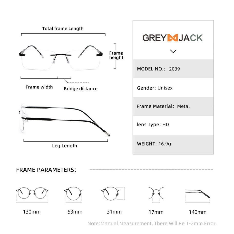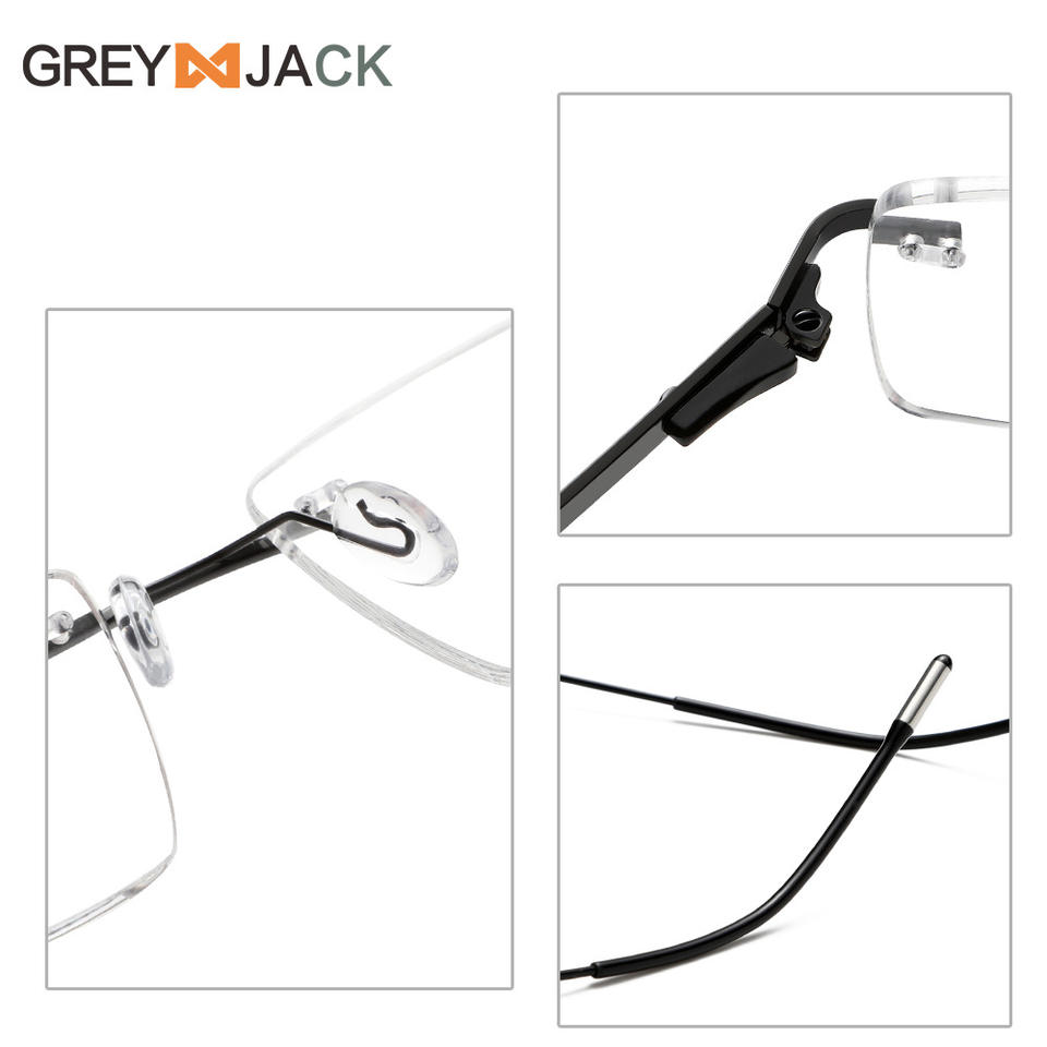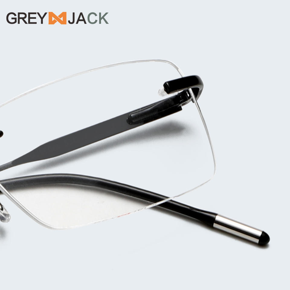 Gafas sin montura Greyjack, montura metálica rectangular, lentes AC, gafas ópticas unisex, tamaño mediano, estilo empresarial