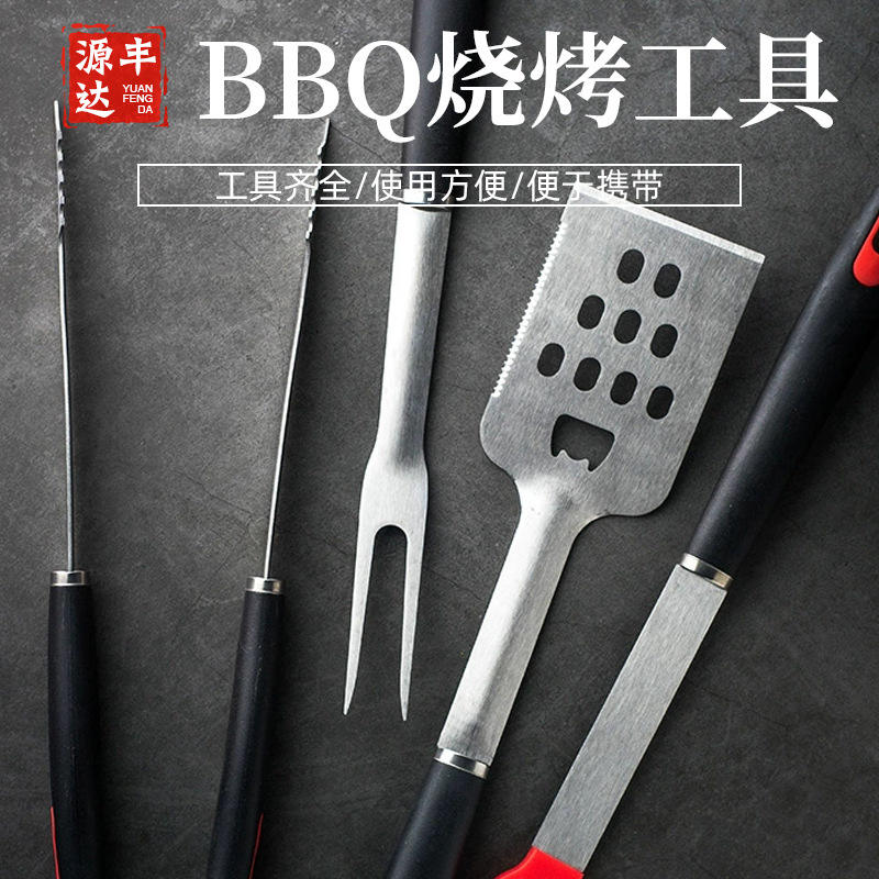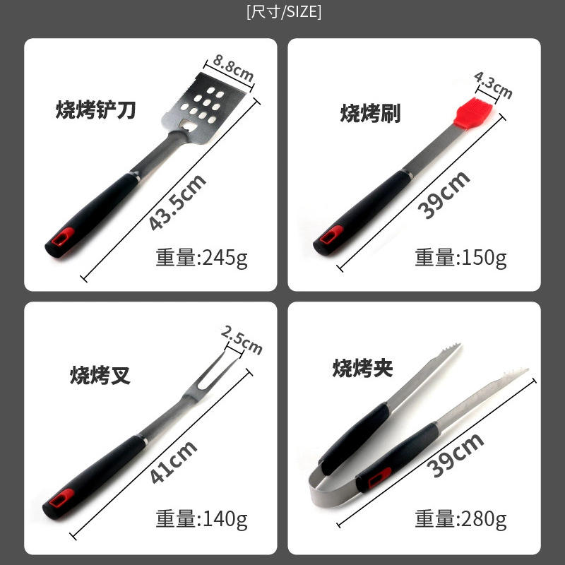 Grill Tools 4 Piece Set Stainless Steel Spatula Fork Tongs Brush Multipurpose BBQ Utensils