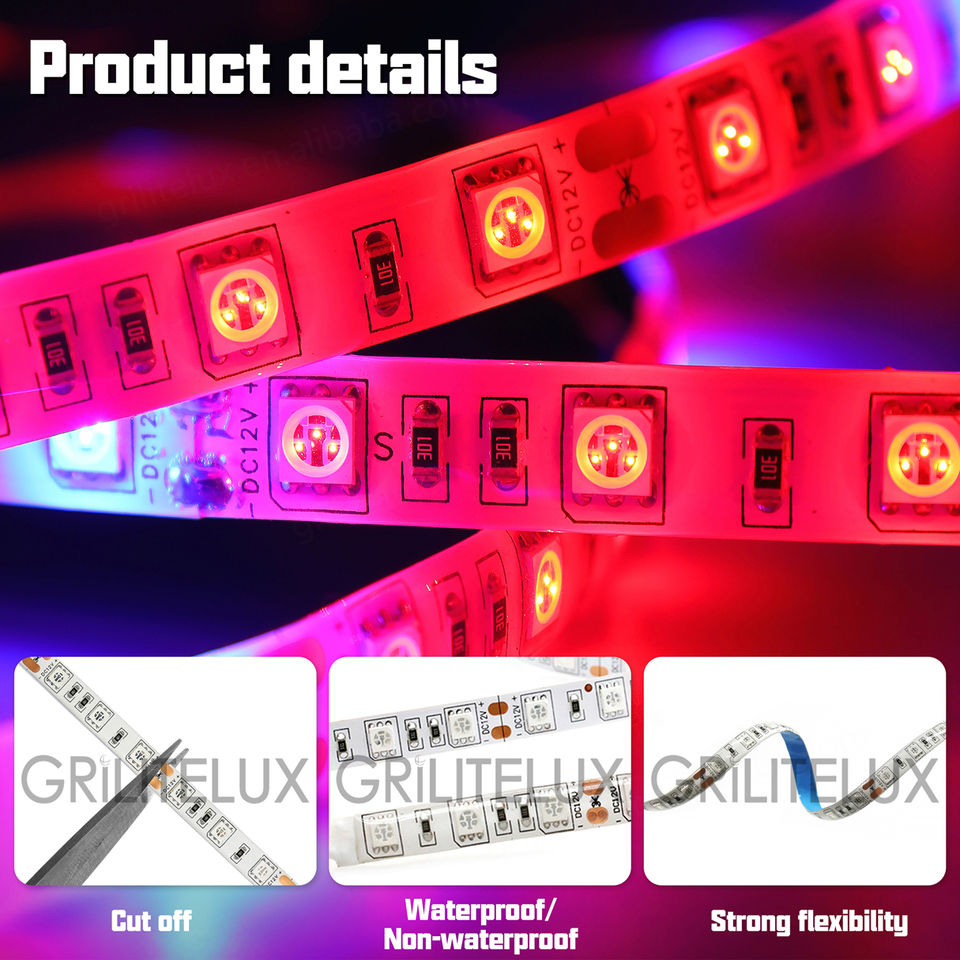 Tira de Luz LED para Cultivo de Plantas de 16.4 Pies, Espectro Dual Rojo y Azul 5:1, IP20/IP65, Lámpara Flexible para Invernadero