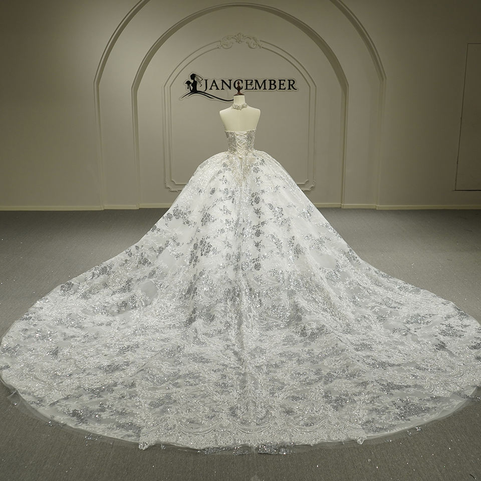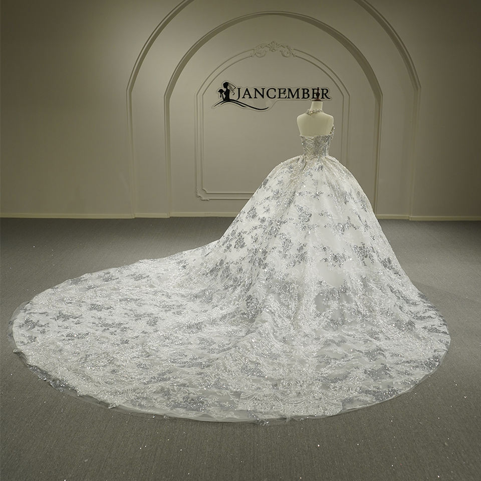 Vestido de novia de alta gama Jancember con patrón de bordado de encaje pesado, romántico, digno y delicado.