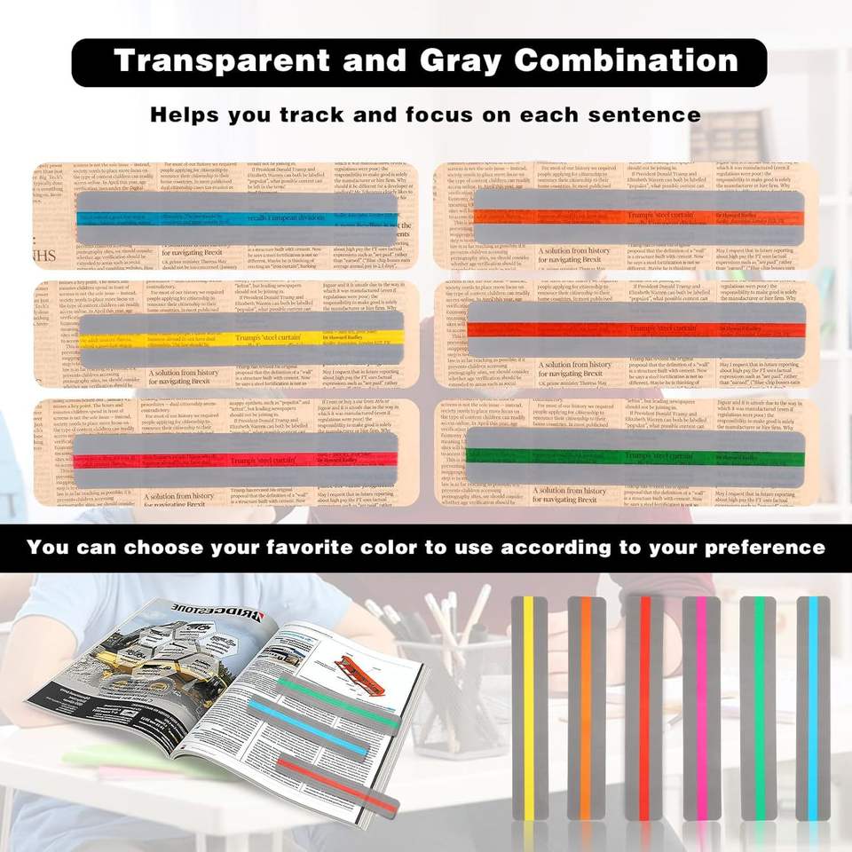 Tiras de lectura guiada Tiras de resaltado Superposición de colores Marcadores de resaltado Ayuda con la dislexia