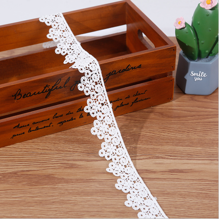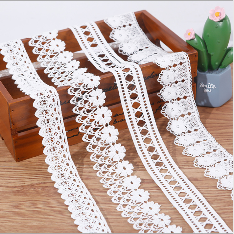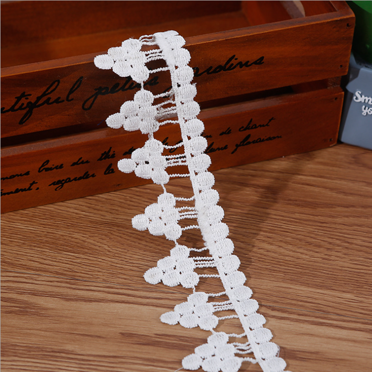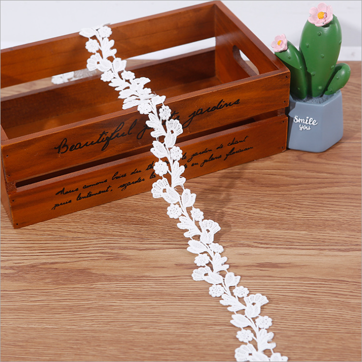 Adorno de encaje de guipur con bordado de poliéster blanco ancho para vestido de novia