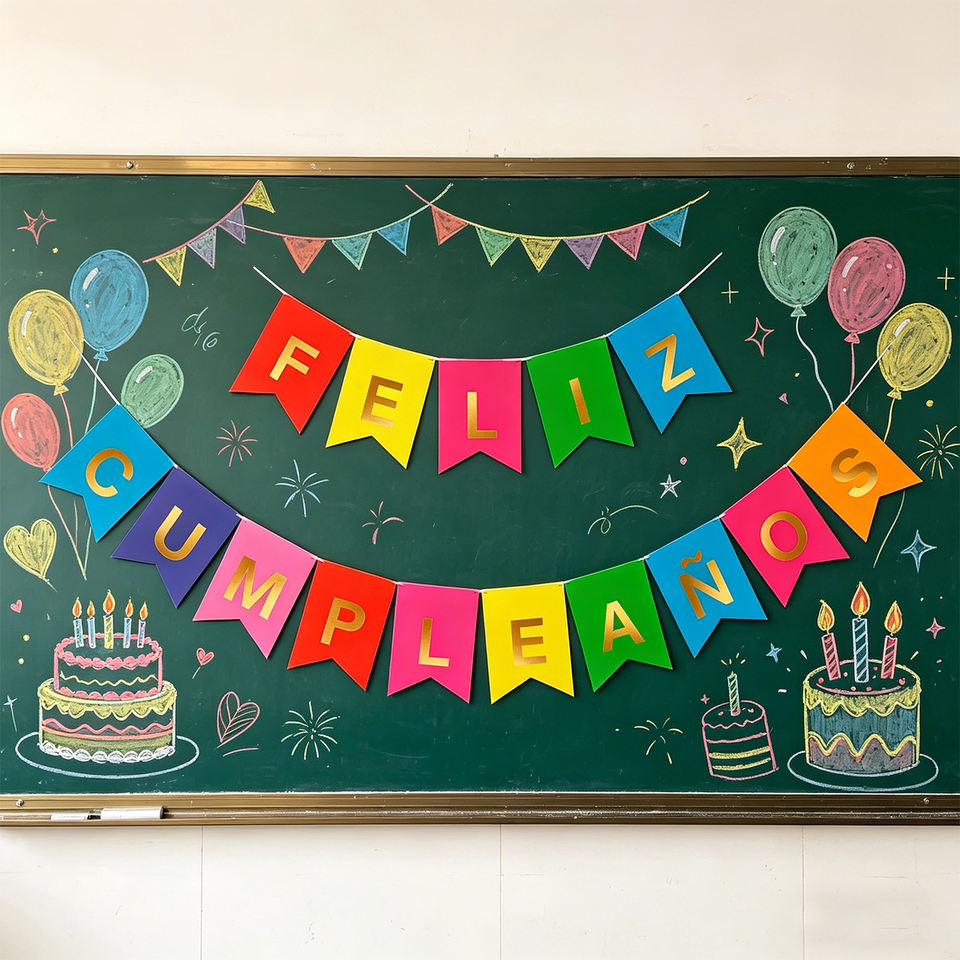 Guirnalda de Letras Multicolor de Feliz Cumpleaños en Dorado, 16 Piezas, 4 Metros, Banderines para Fiesta