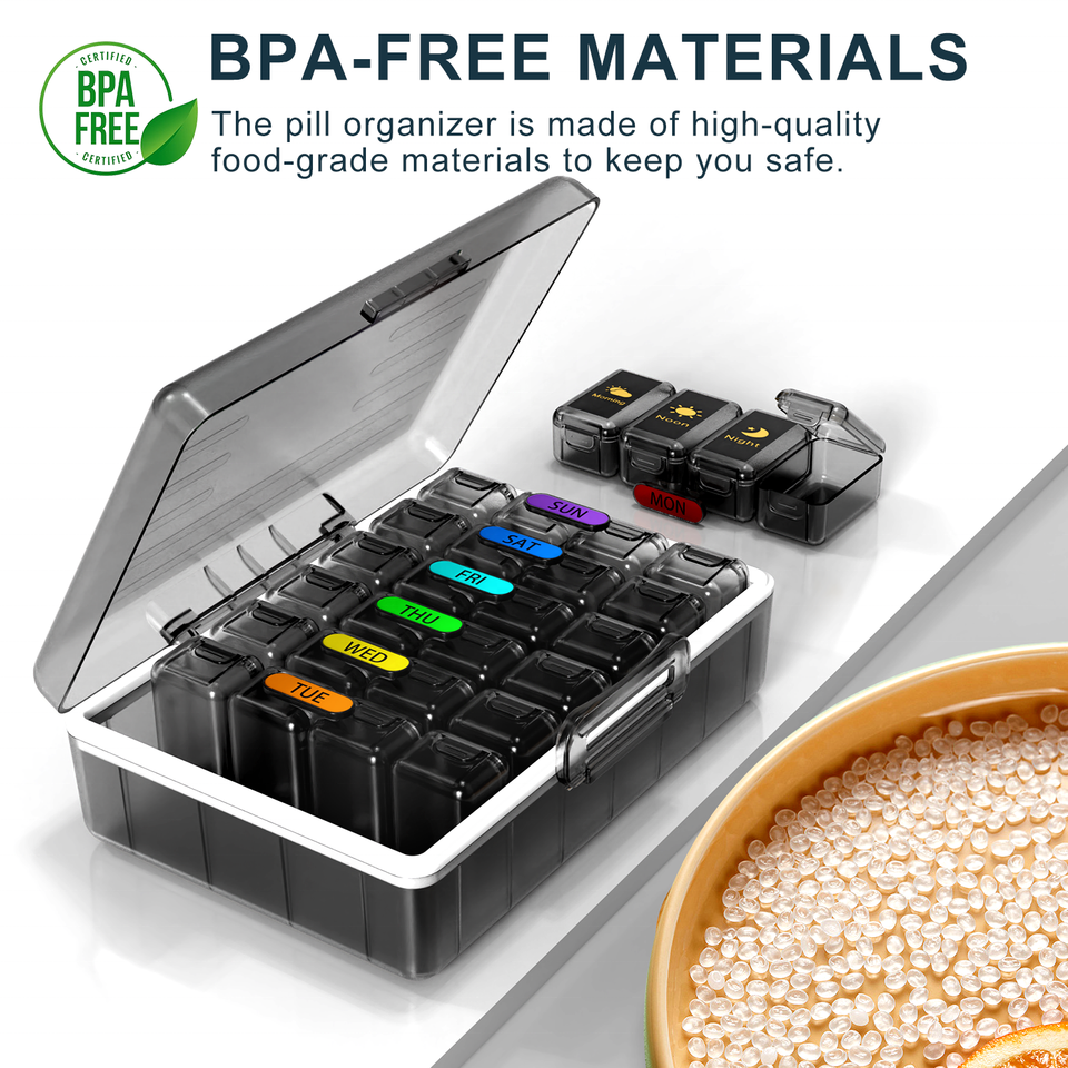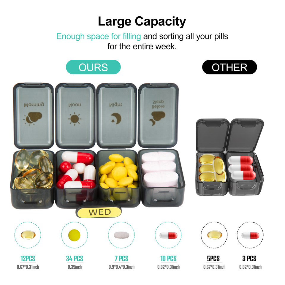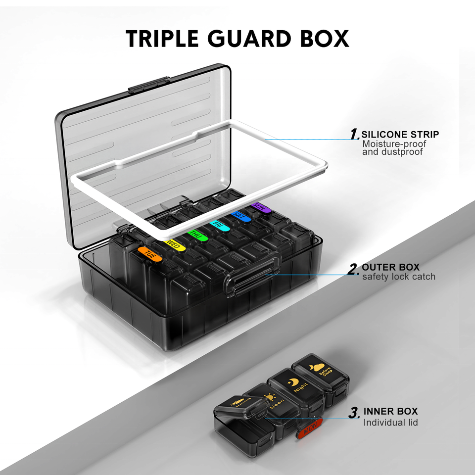 Pastillero Semanal Gujia de 28 Compartimentos, Libre de BPA, Material PP ABS, Gran Capacidad, Estuche de Almacenamiento de Viaje, Uso Multifuncional de 7 Días