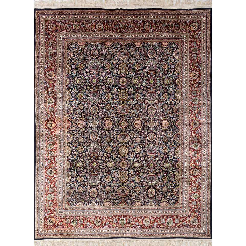 Alfombras de Seda Anudadas a Mano Gulmarg Azules Pae-5521 Alfombra Decorativa Floral para el Hogar