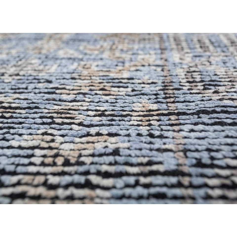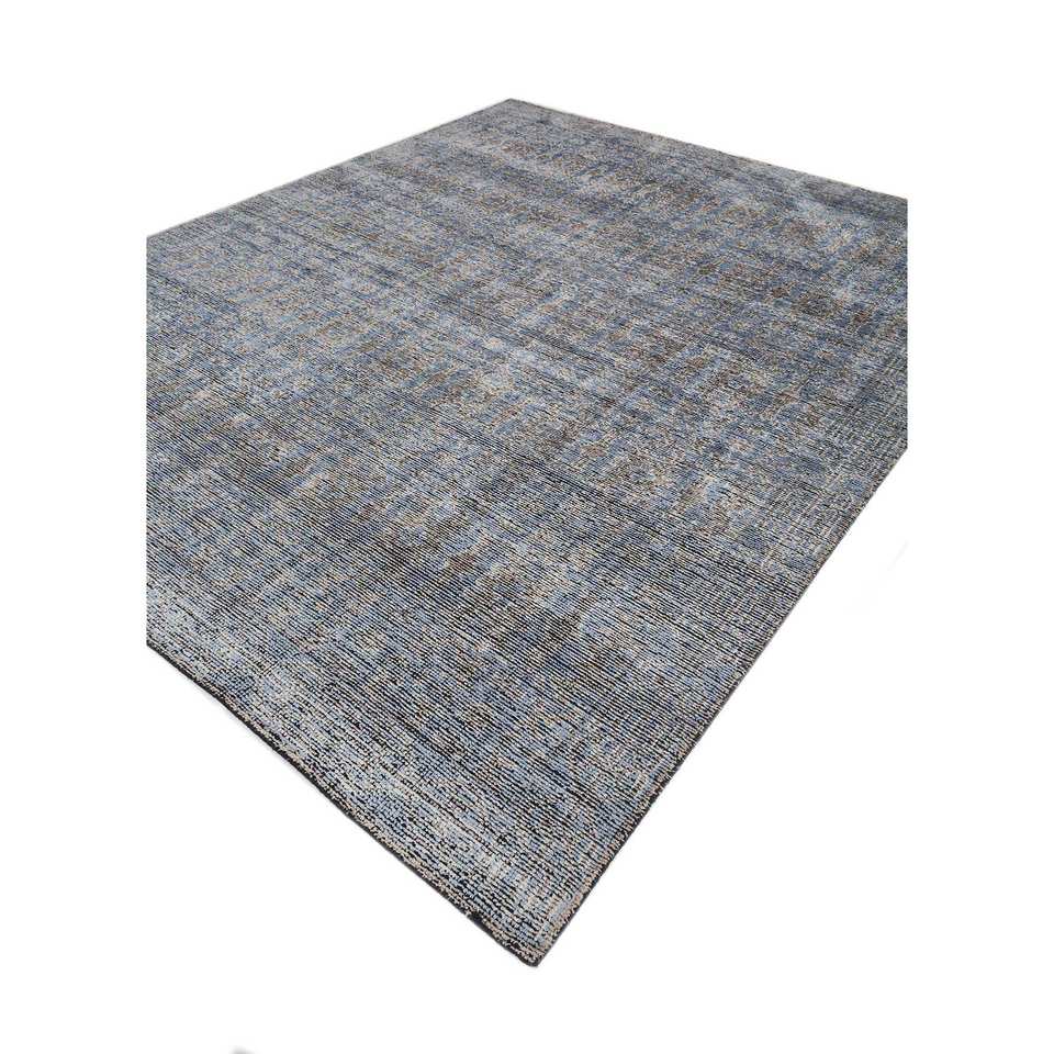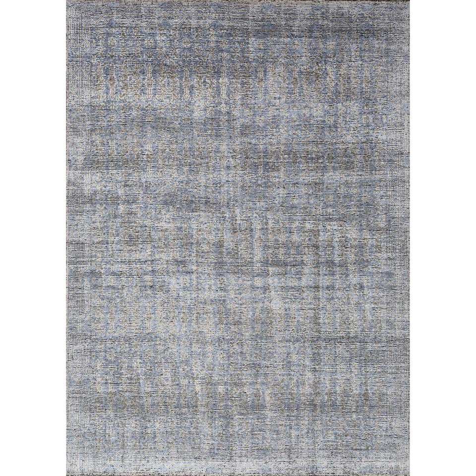 Alfombra de Seda Azul Gulmarg Anudada a Mano con Patrón Abstracto, Material de Viscosa para el Hogar, Pasillo o Sala de Estar, Modelo SKPS-246