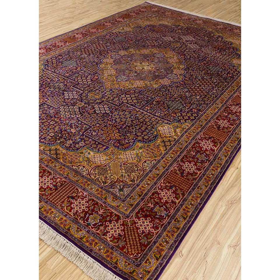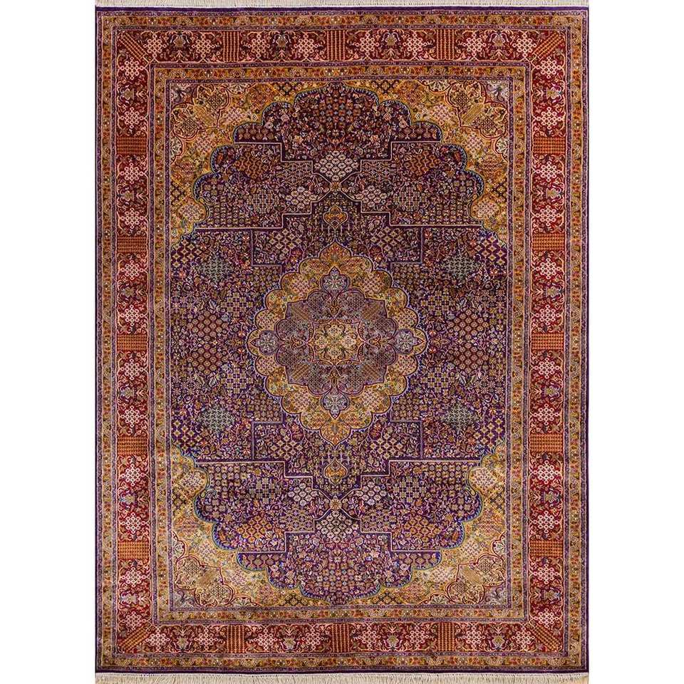 Alfombras de Seda Anudadas a Mano Gulmarg, Diseño de Medallón Rosa y Morado para el Hogar, Rectangulares de 9x12, Decoración para Pasillo y Sala de Estar, Modelo Pkps-72