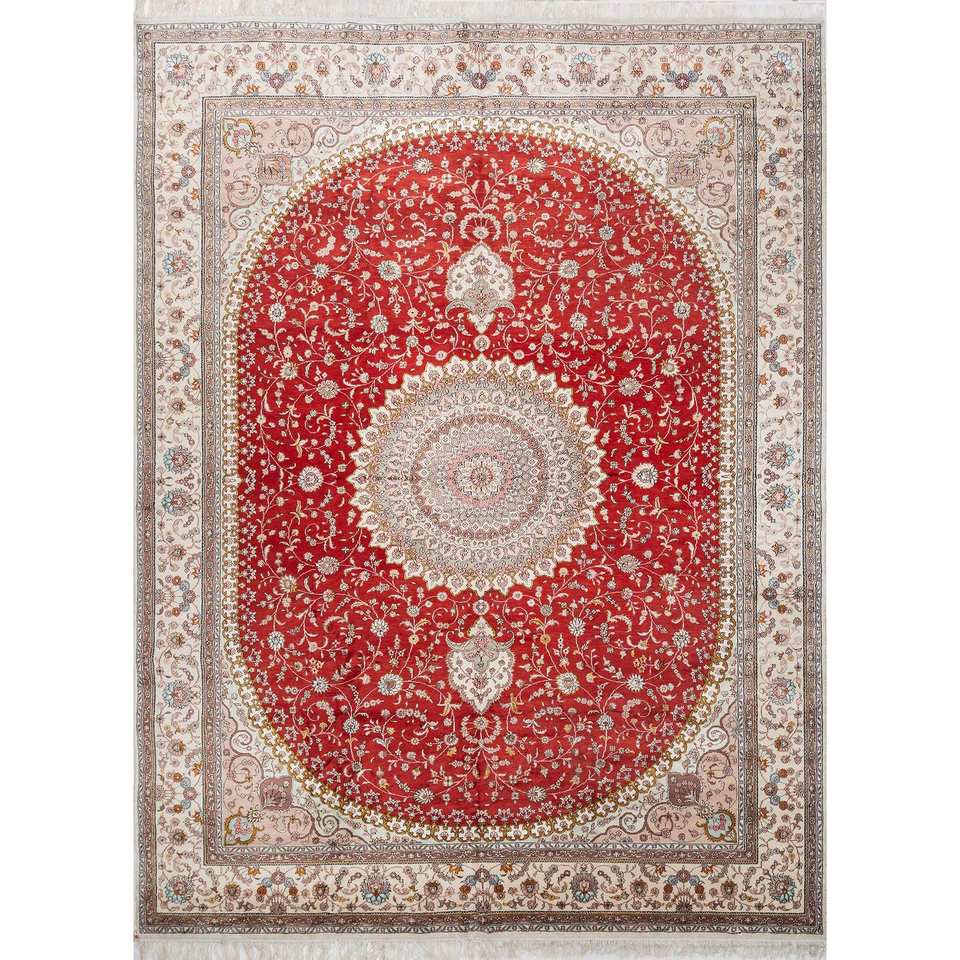 Alfombras de Seda Anudadas a Mano Gulmarg, Diseño de Medallón Rojo Naranja, Nuevo Parche Rectangular Tipo Rompecabezas para Sala de Estar, Alfombra para el Hogar -Pae-5991