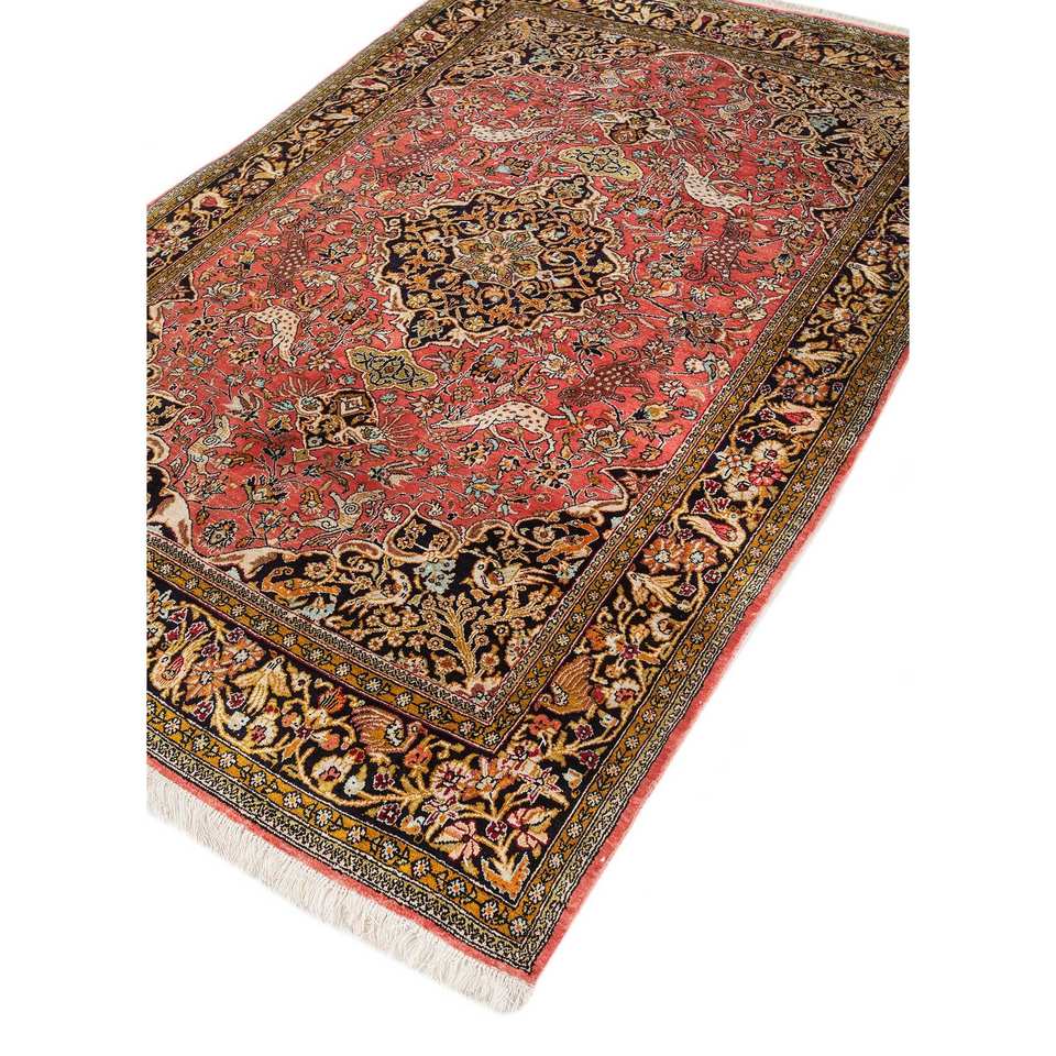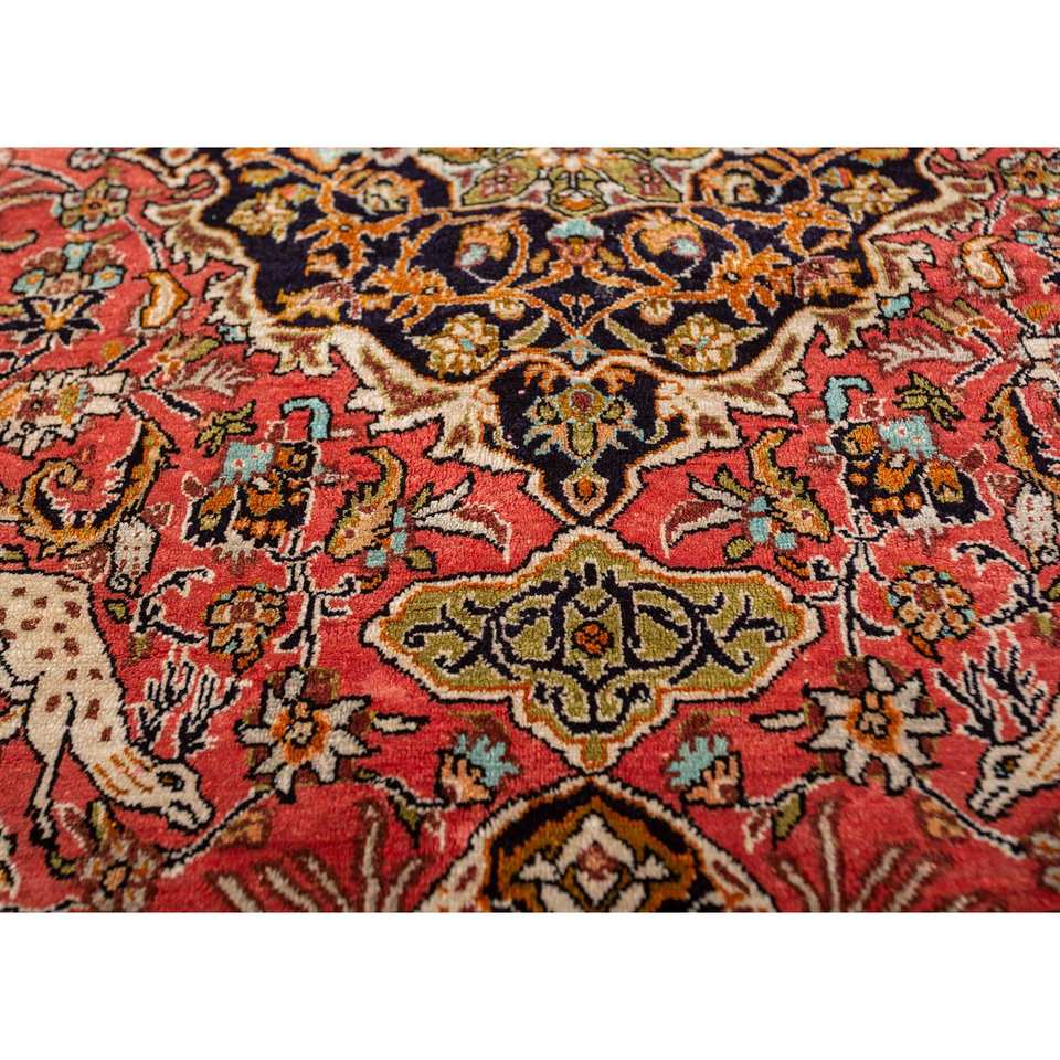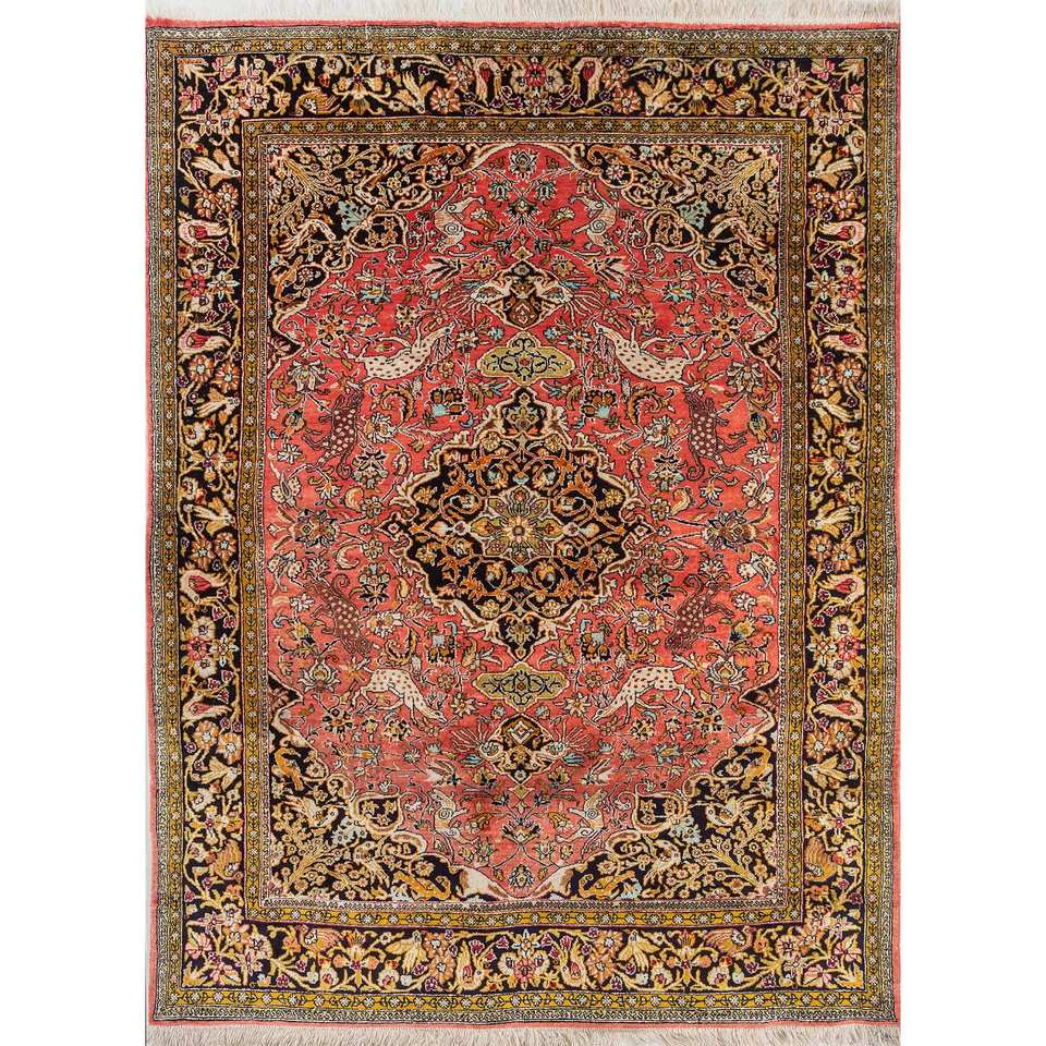 Alfombras de Seda Anudadas a Mano Gulmarg, Diseño Rectangular con Medallón Rojo Naranja, Estilo Patchwork para Sala de Estar, Modelo Pae-6312
