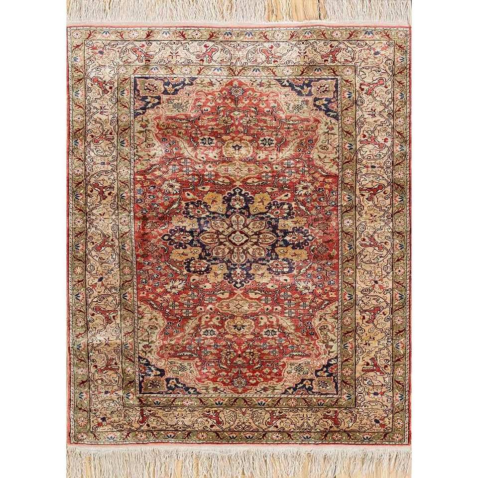 Alfombras de Seda Anudadas a Mano Gulmarg, Diseño de Medallón Rojo Naranja, Nuevo Parche Rectangular Tipo Rompecabezas para Sala de Estar, Alfombra para el Hogar -Pae-4873