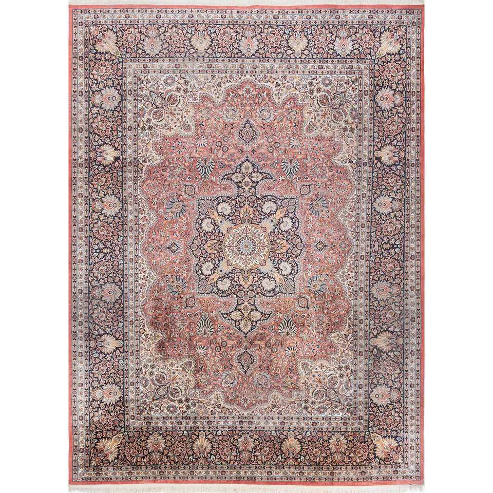 Alfombras de Seda Anudadas a Mano Gulmarg, Color Rojo Naranja, Estilo Medallón, Nuevas Alfombras Rectangulares con Diseño de Rompecabezas para el Hogar, Pae-6021, Alfombra para Sala de Estar