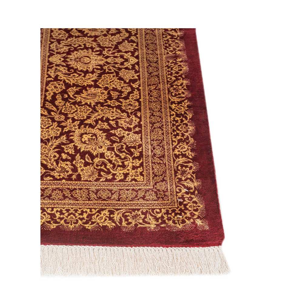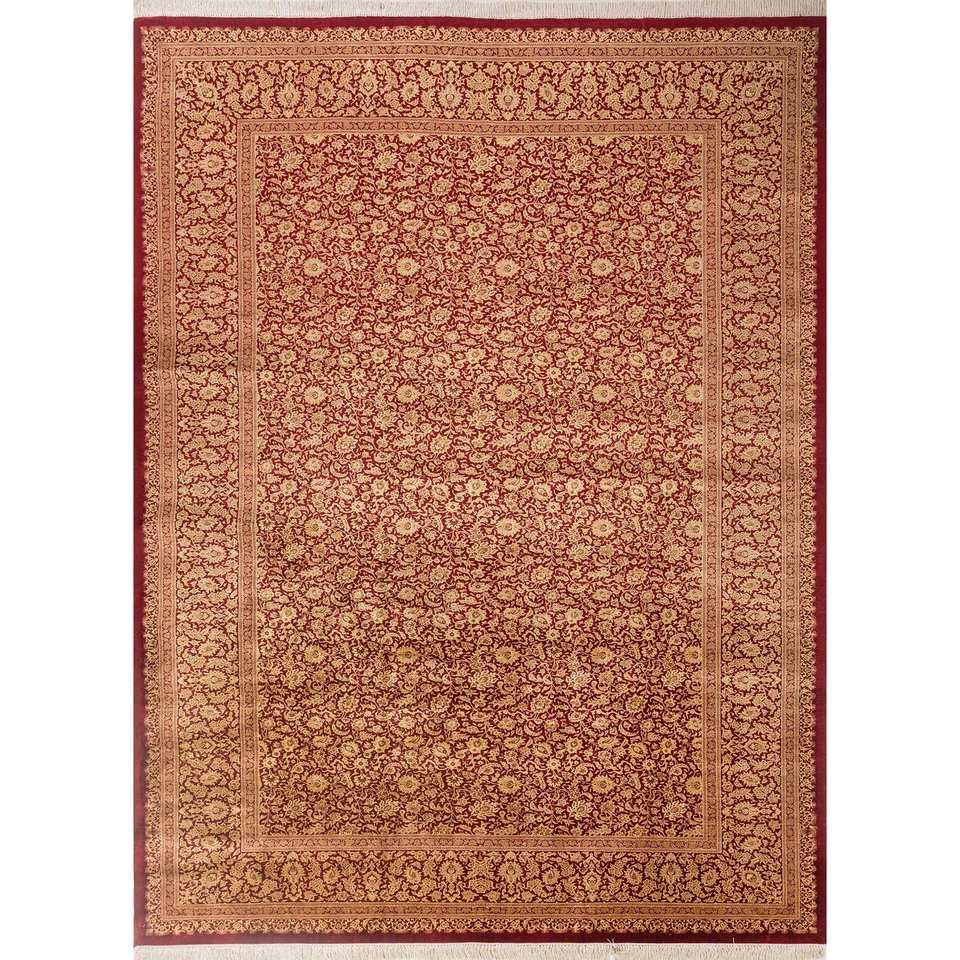 Alfombras de Seda Anudadas a Mano Gulmarg, Diseño Floral Rojo y Naranja, Rectangulares, para Pasillo y Sala de Estar, Modelo Pae-6355