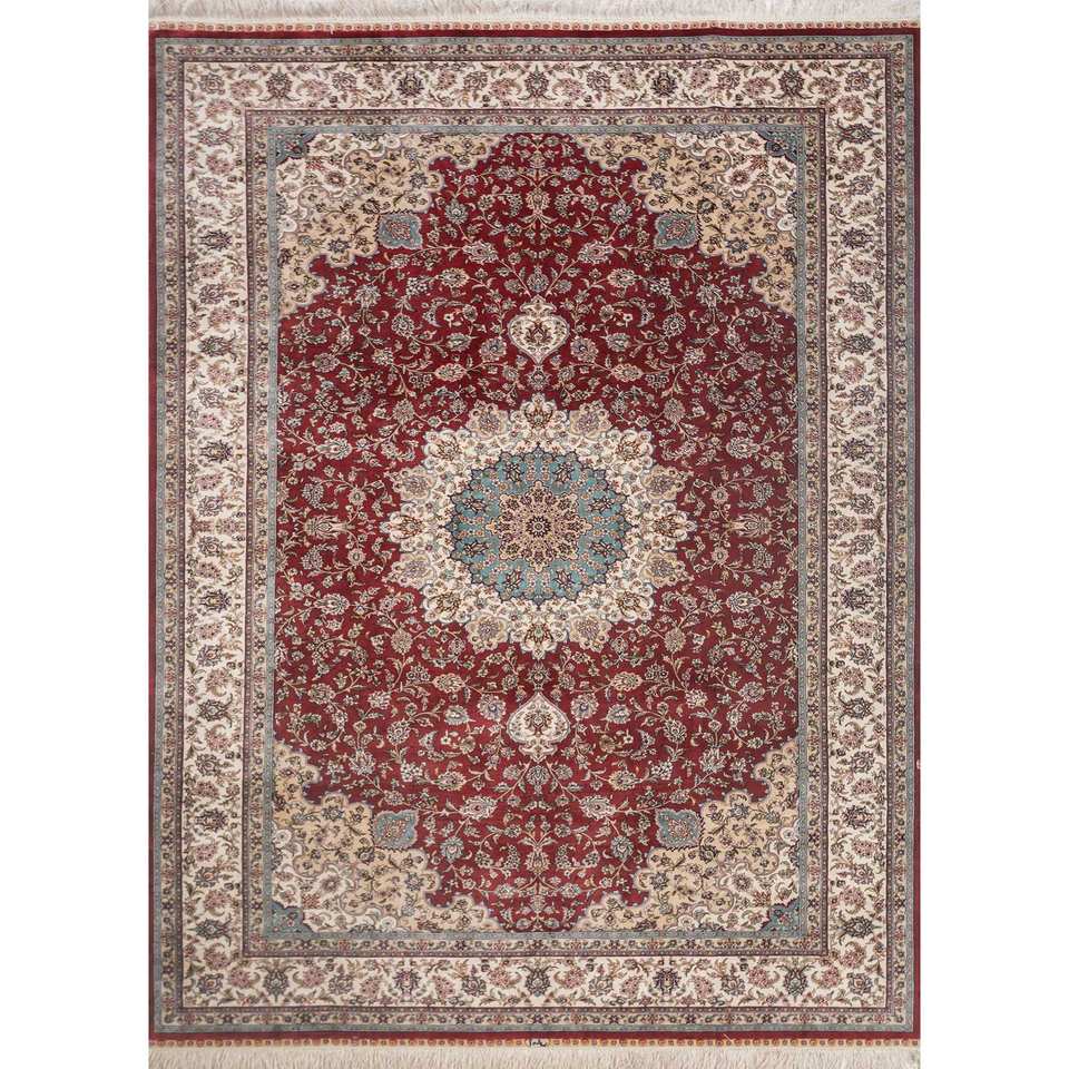 Alfombra de Seda Anudada a Mano Gulmarg, Diseño de Medallón Rojo Naranja, Nueva Alfombra Rectangular con Diseño de Rompecabezas para Sala de Estar -Pae-5670