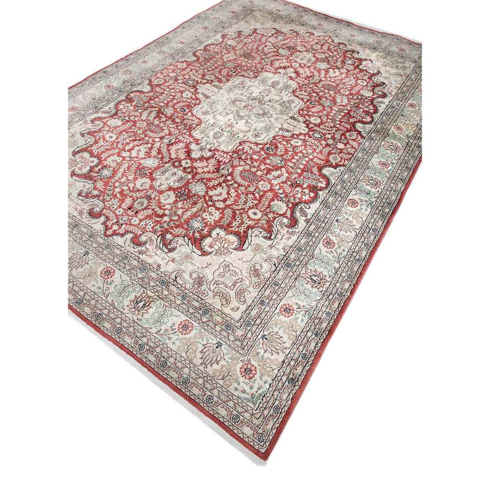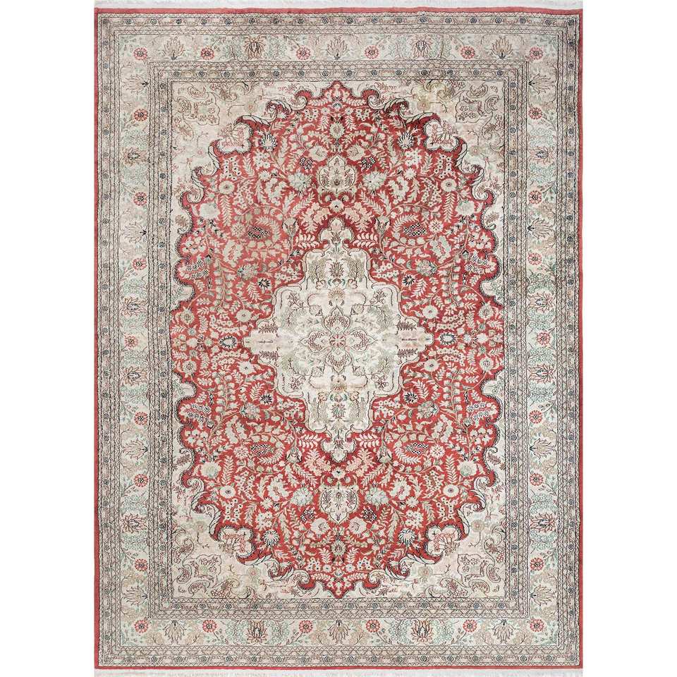 Alfombras de Seda Anudadas a Mano Gulmarg, Rectangulares, con Medallón Rojo Naranja Abstracto, para el Hogar, 9x12, Hechas a Mano en Tabriz, para Dormitorio o Pasillo