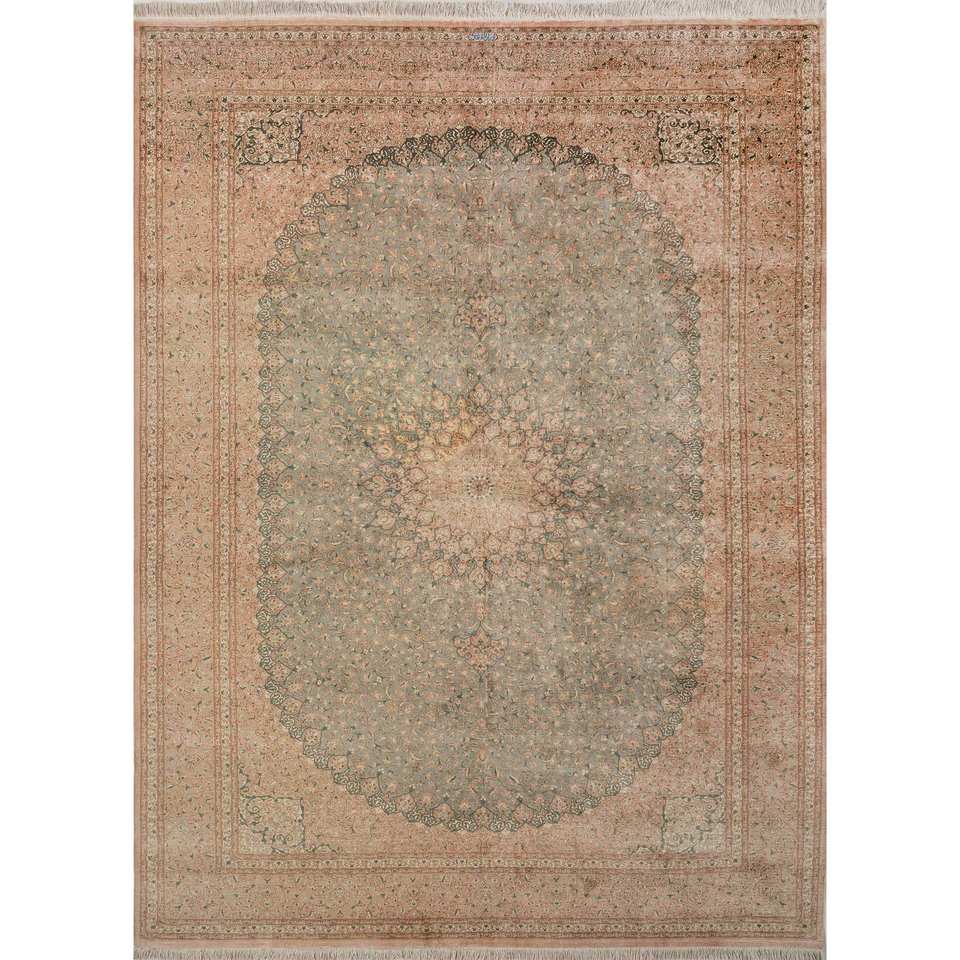 Alfombras de Seda Anudadas a Mano Gulmarg, Grandes, Rojas y Naranjas, con Diseño de Medallón Rectangular y Patrones de Rompecabezas para el Hogar, Pae-6219, para Sala de Estar y Pasillo