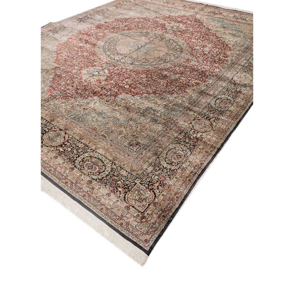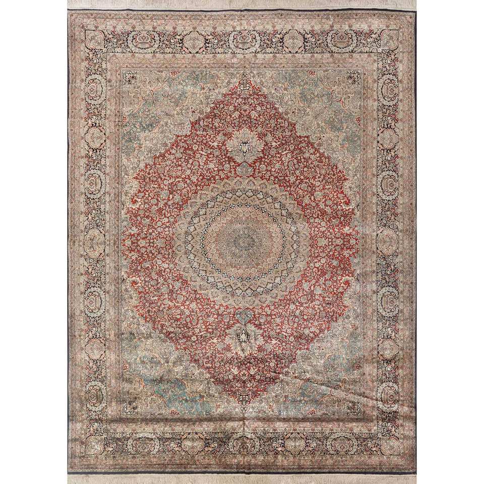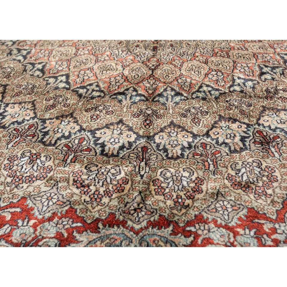 Alfombras de Seda Anudadas a Mano Gulmarg, Grandes, Rojas y Naranjas, con Diseño de Medallón Rectangular y Patrones de Rompecabezas para el Hogar, Pae-6386, para Sala de Estar y Pasillo