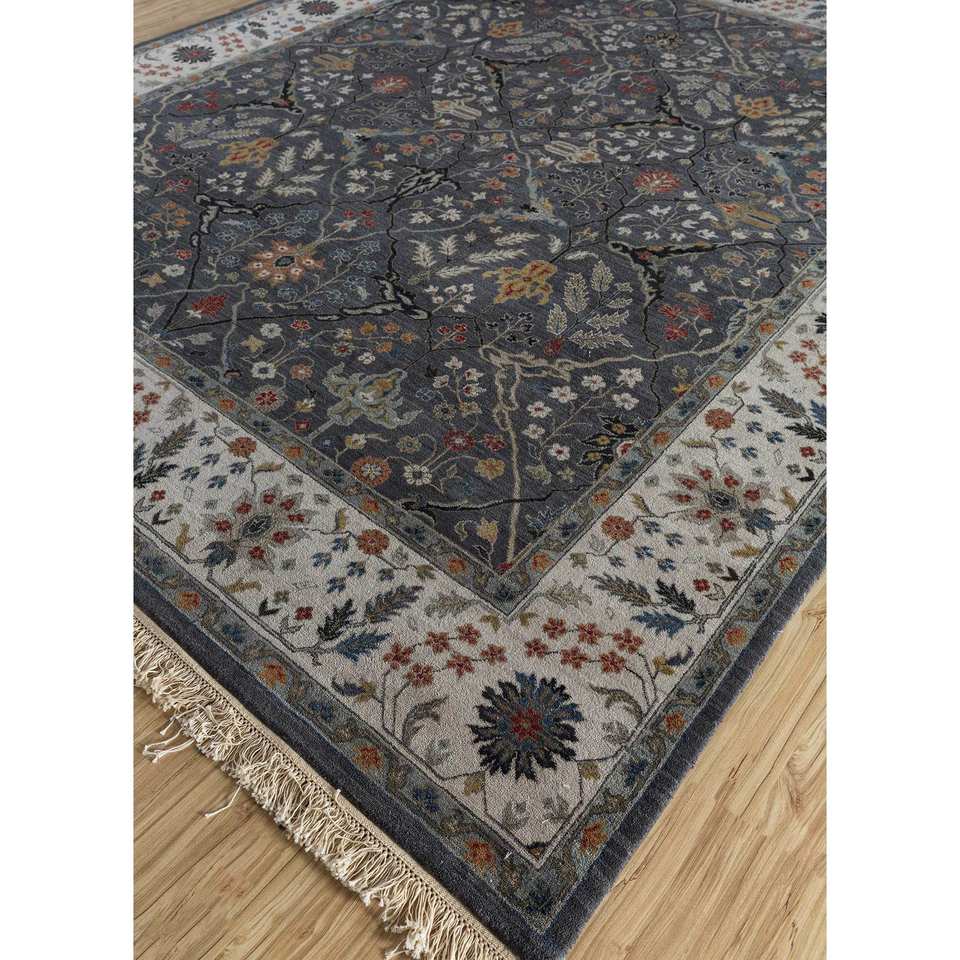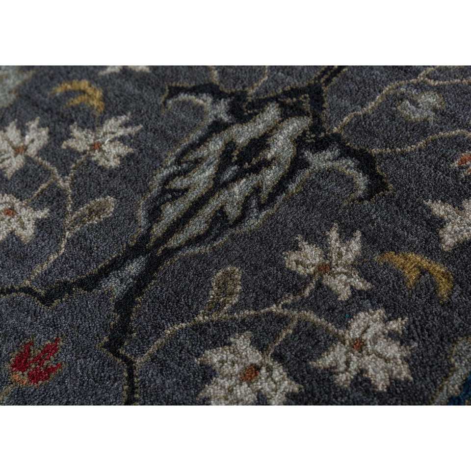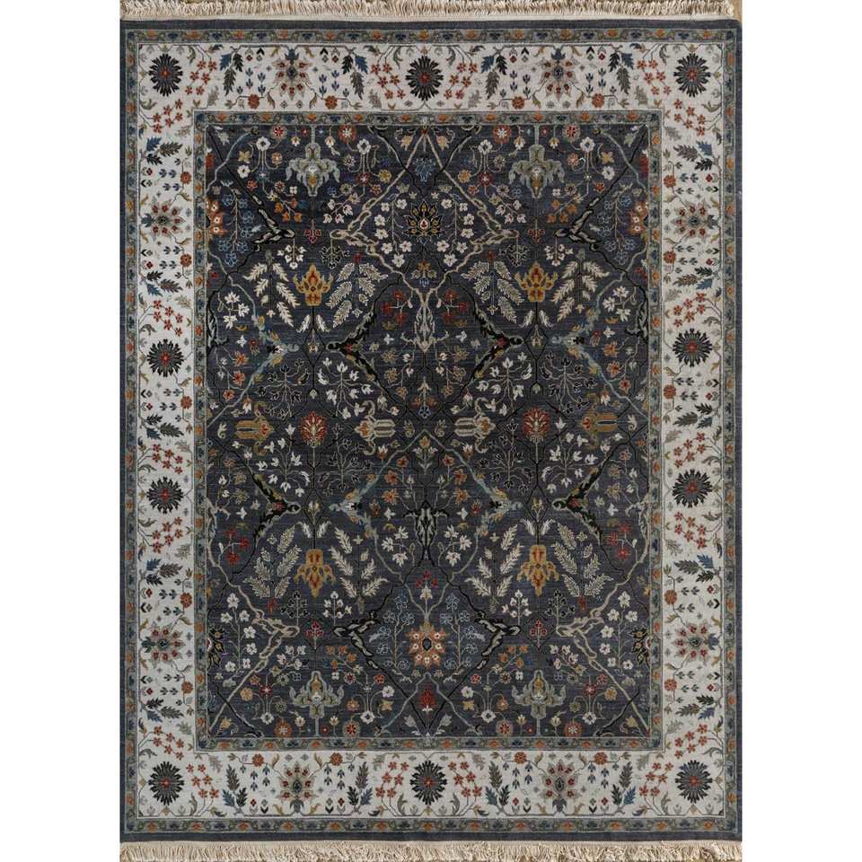 Alfombra Gulnar de Lana Anudada a Mano, Gris y Negra con Patrón Floral Abstracto para Sala de Estar, Dormitorio, Pasillo, Estilo Boho - Nueva Alfombra para Habitación Spr-28