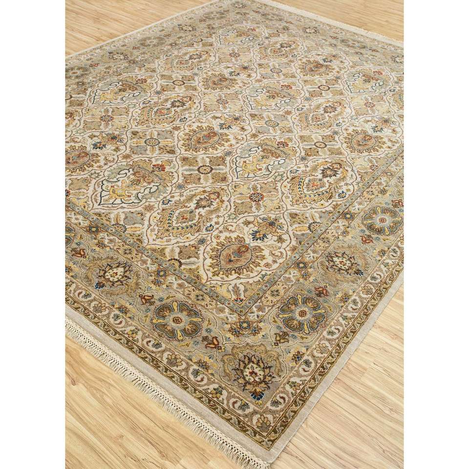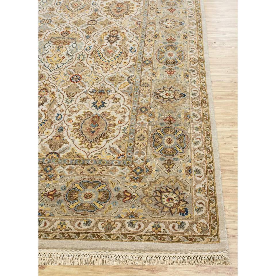 Alfombras de Lana Anudadas a Mano Gulnar Ivory Spr-41, Rectangulares, con Diseño Boho Floral y Abstracto para el Hogar y el Pasillo - Alfombras Jaipur US