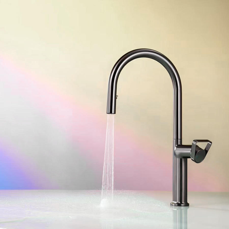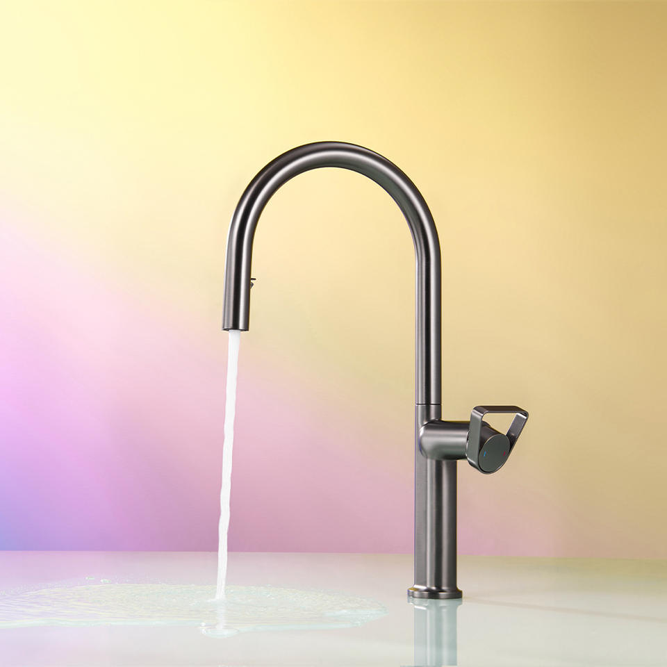 Grifo de Cocina Mezclador de Agua Fría y Caliente con Núcleo de Latón, Diseño Contemporáneo, Fácil de Limpiar, Color Gris Metálico, Extraíble