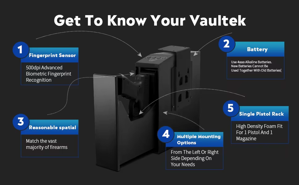 Caja de seguridad para pistola con huella dactilar biométrica para mesita de noche, escritorio, lado de la cama, lámpara empotrada en camión, caja de seguridad para pistola de puerta corredera automática con
