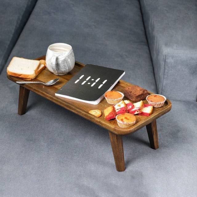 Bandeja rectangular de madera Gusto, mesa de centro otomana moderna, mesa de centro de madera maciza de perfil bajo, mesa rectangular con acento, estilo rústico