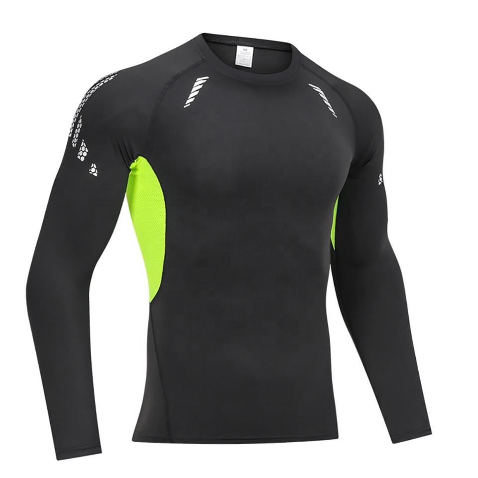 Camiseta de compresión de gimnasio para hombre, cuello redondo, manga larga, entrenamiento, Spandex/poliéster, transpirable, Primavera, Top activo