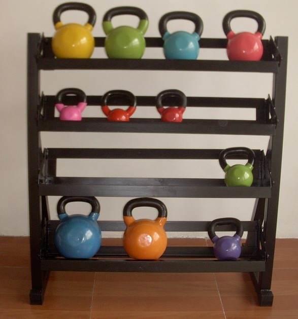 Estante de almacenamiento de vinilo de hierro fundido de cuatro capas para gimnasio, pesa rusa, equipo de Fitness, Crossfit
