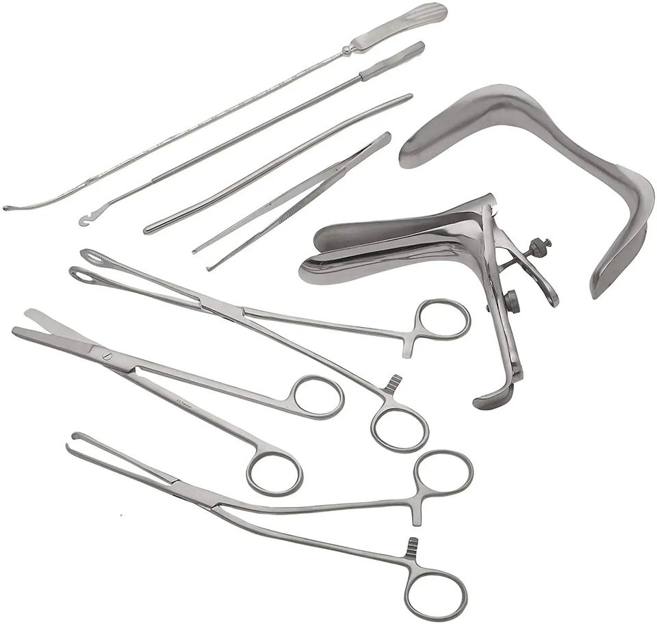 Juego de Instrumentos de Ginecología de 9 Piezas | Kit Quirúrgico de Acero Inoxidable para Obstetricia y Ginecología | Herramientas Médicas Reutilizables para Clínicas y Hospitales