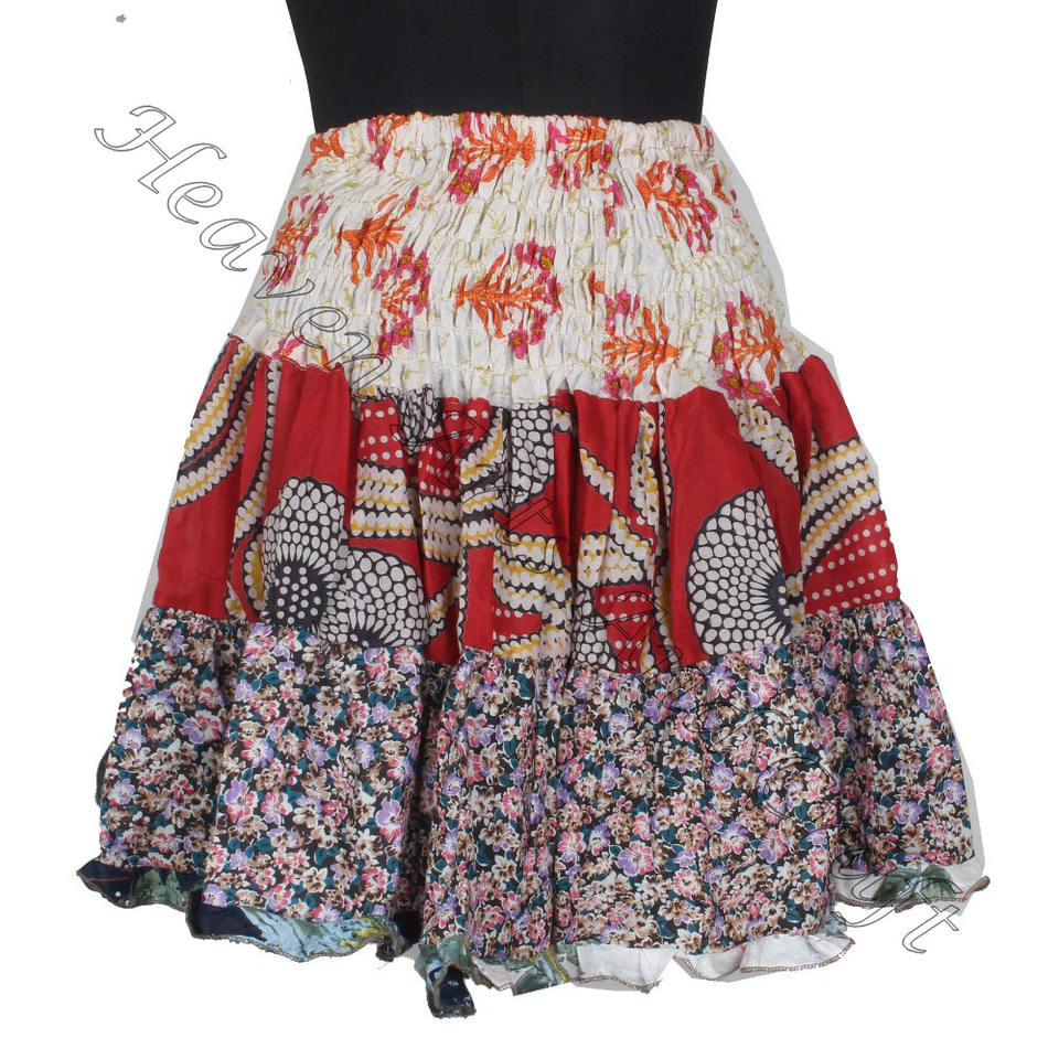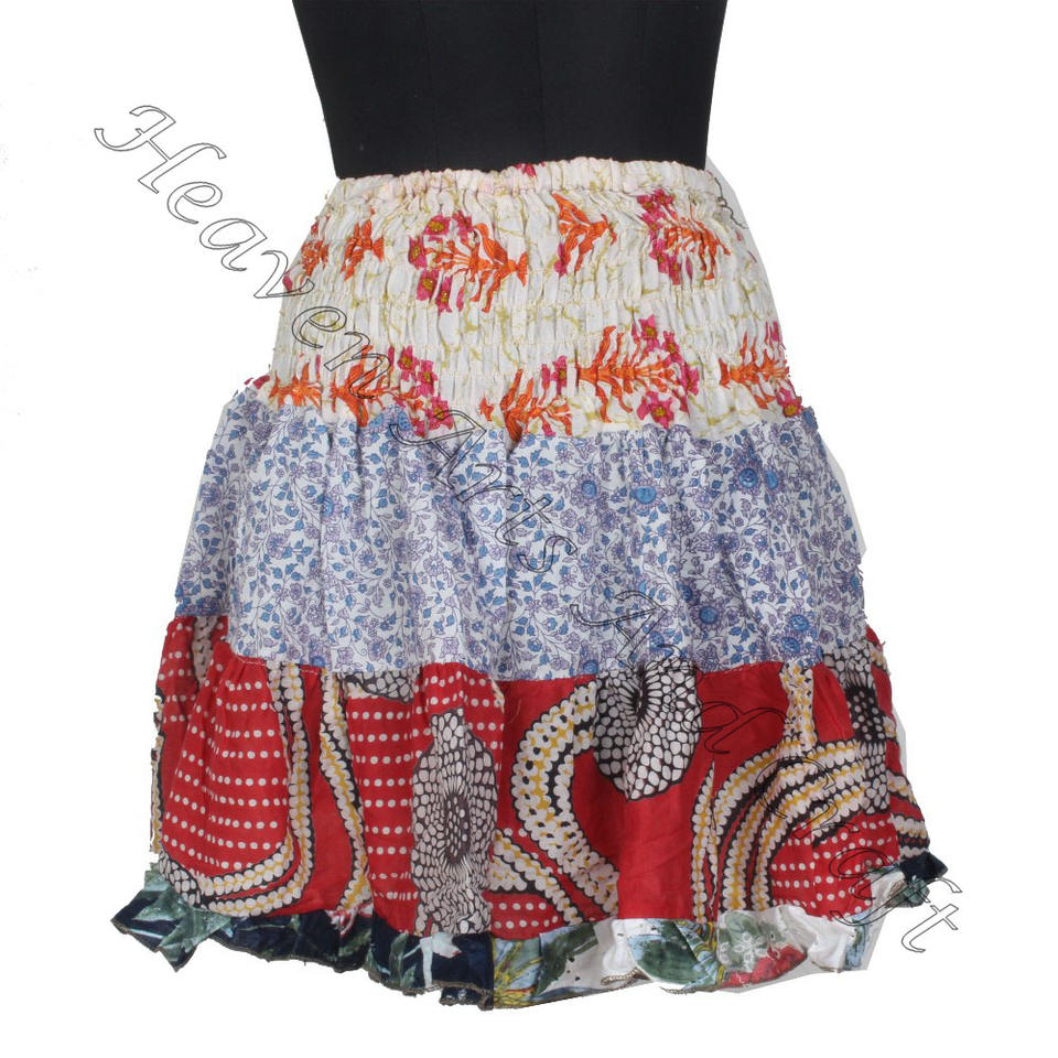 Palabras clave:Mini falda con parches de sari de algodón vintage