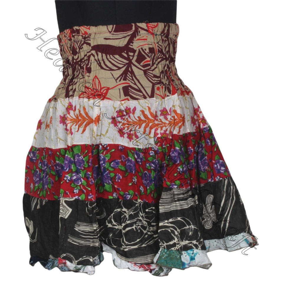Palabras clave:Mini falda con parches de sari de algodón vintage