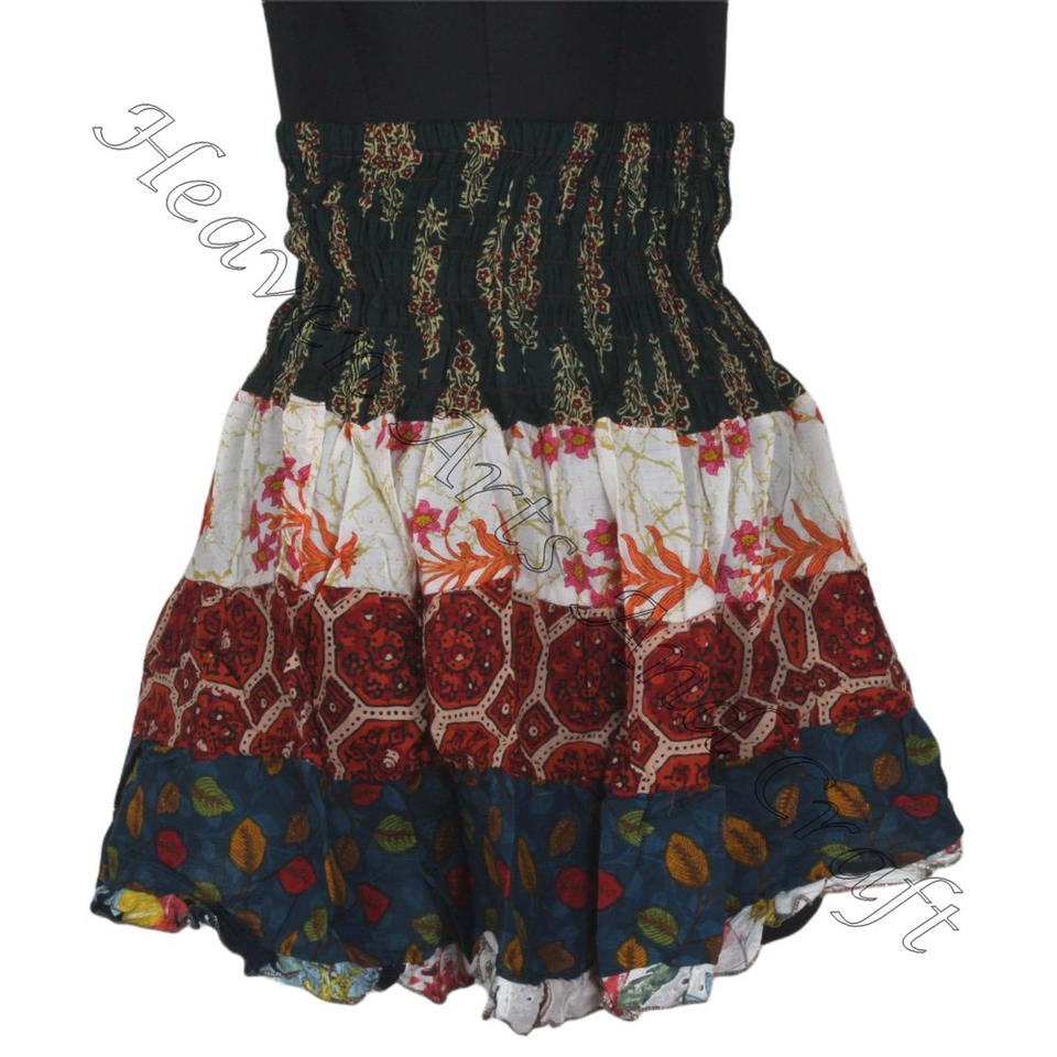 Mini falda Rara con estilo bohemio Indio Gitano MS166 algodón Patchwork ropa de verano transpirable liso teñido Hippy Festival Sexy Mini Rara
