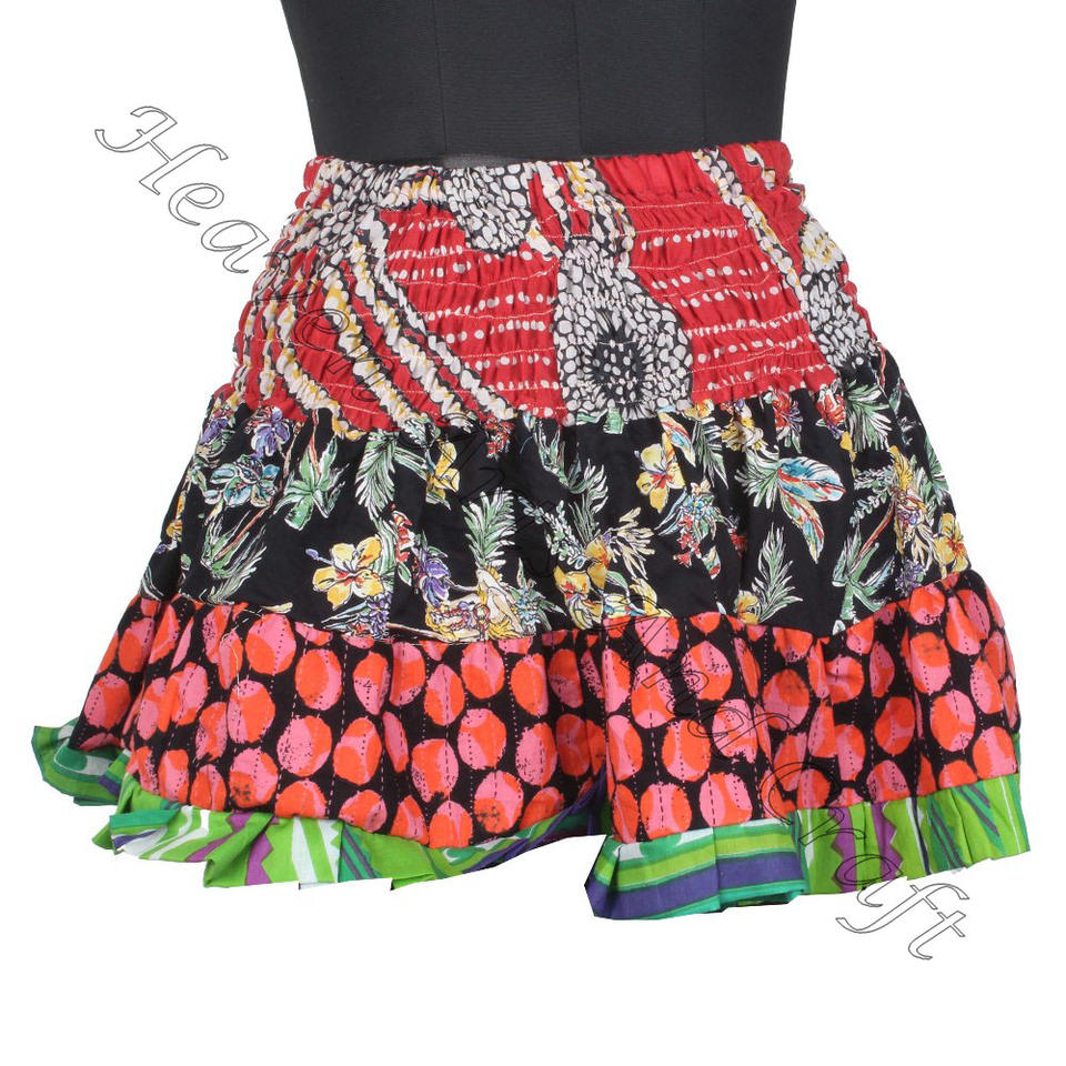 Palabras clave:Mini falda con parches de sari de algodón vintage