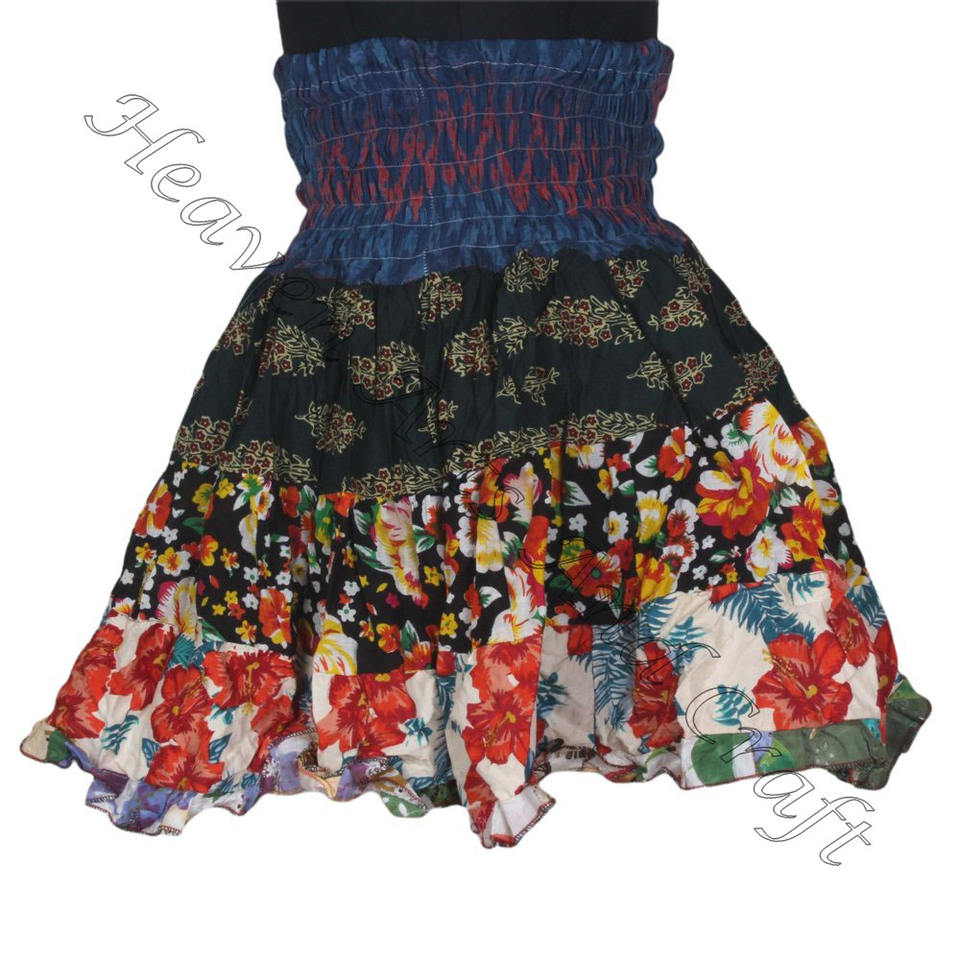 Palabras clave:Mini falda con parches de sari de algodón vintage