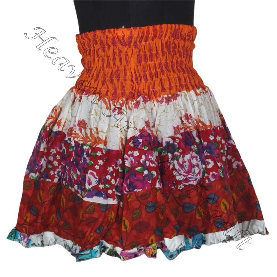 Palabras clave:Mini falda con parches de sari de algodón vintage