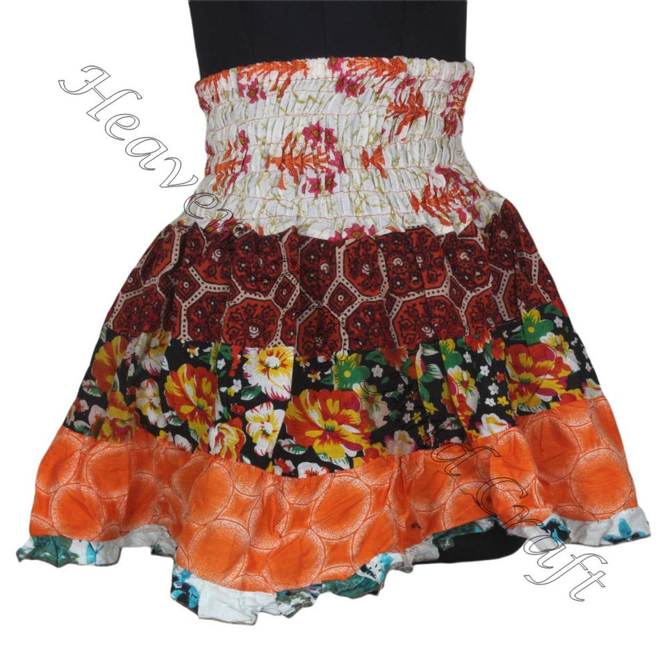 Palabras clave:Mini falda con parches de sari de algodón vintage