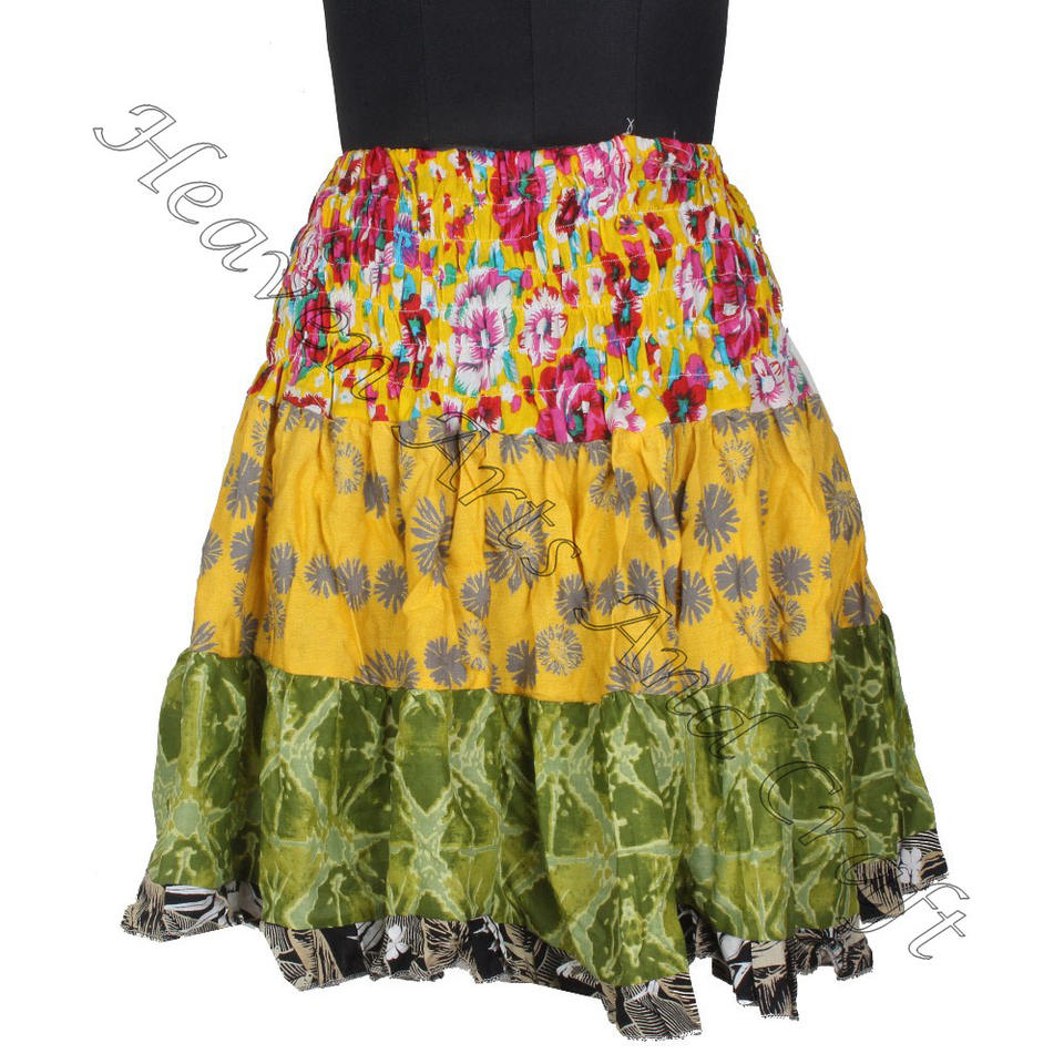 Palabras clave:Mini falda con parches de sari de algodón vintage