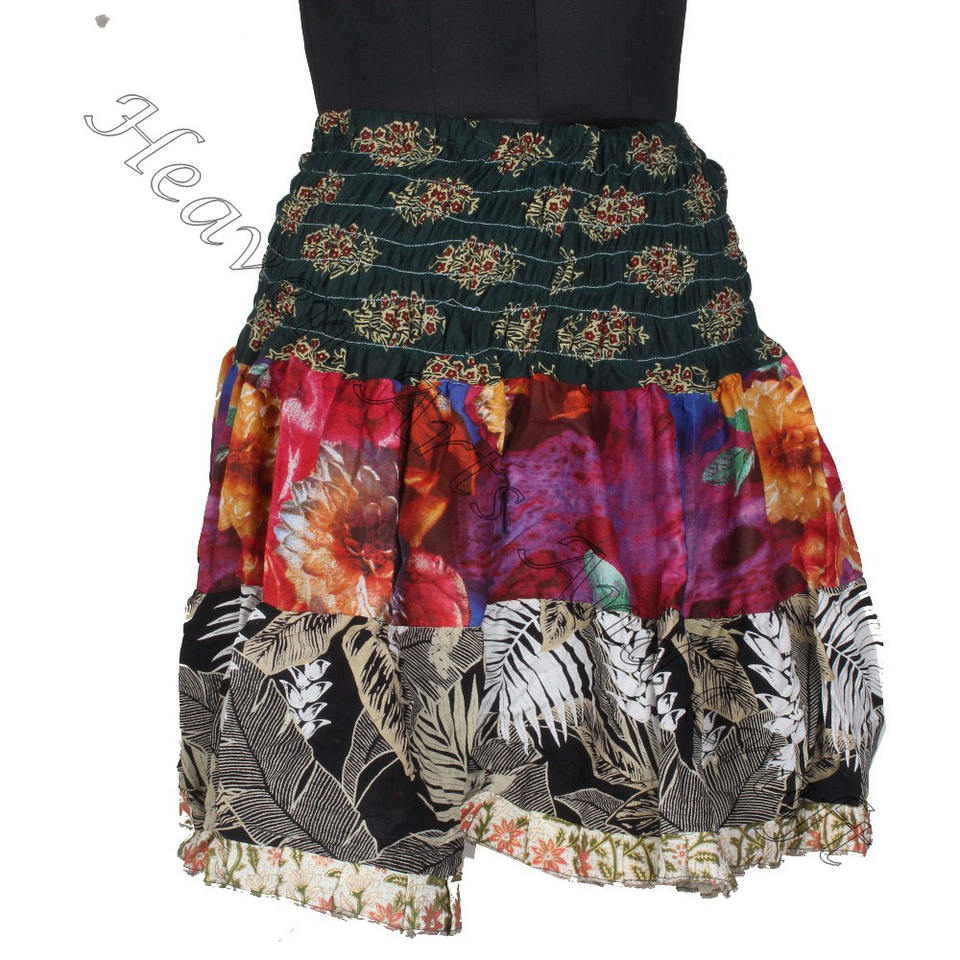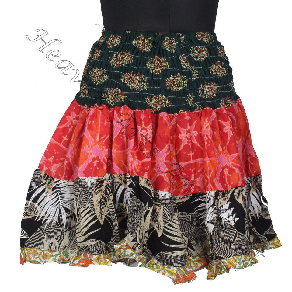 Palabras clave:Mini falda con parches de sari de algodón vintage