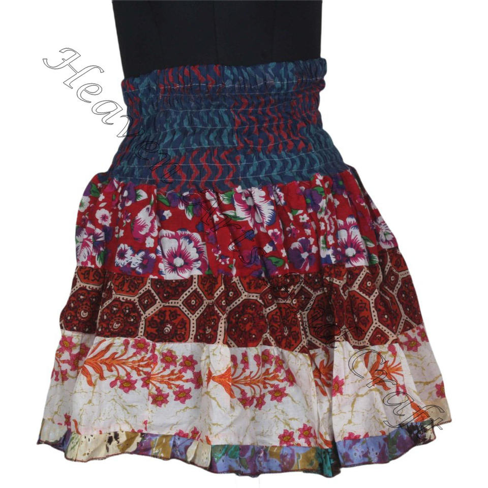 Palabras clave:Mini falda con parches de sari de algodón vintage