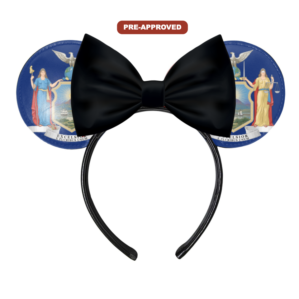 Ella. Accesorios Personalizados de Fábrica: Diadema con Diseño de la Bandera del Estado de Nueva York, Orejas de Ratón, Material de Vinilo, Ajuste Universal