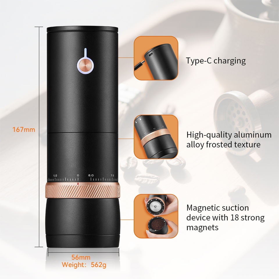 Molinillo de Café Profesional H&H, Mini Molinillo Eléctrico de Aluminio para Preparación de Café Especial
