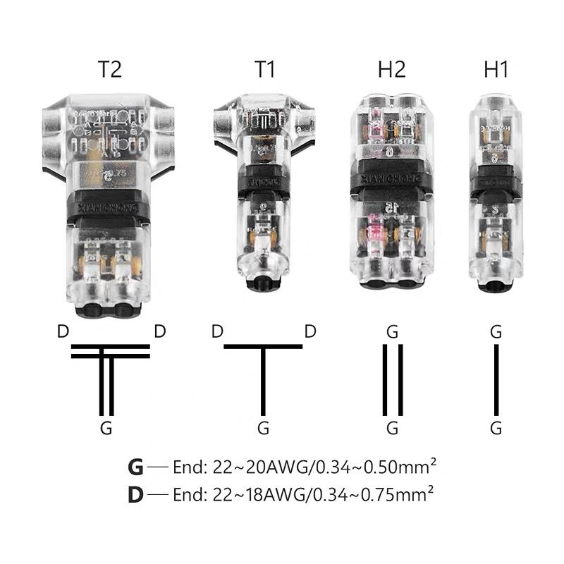Conector de cable de bloqueo Scotch rojo tipo H de 1 pin, 22-18AWG para terminales de empalme rápido, carcasa de PC de crimpado, tira LED, Cable de Audio para coche, alimentación