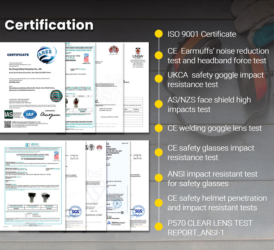 CE EN397, ANSI Z89.1