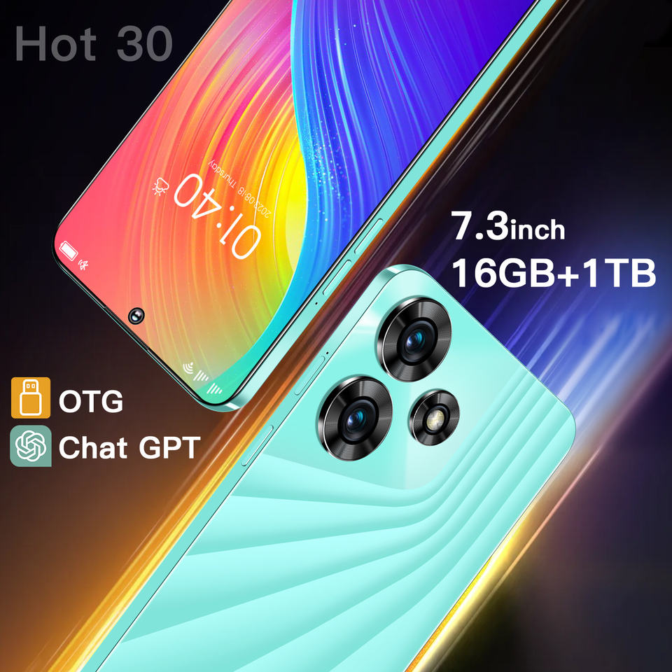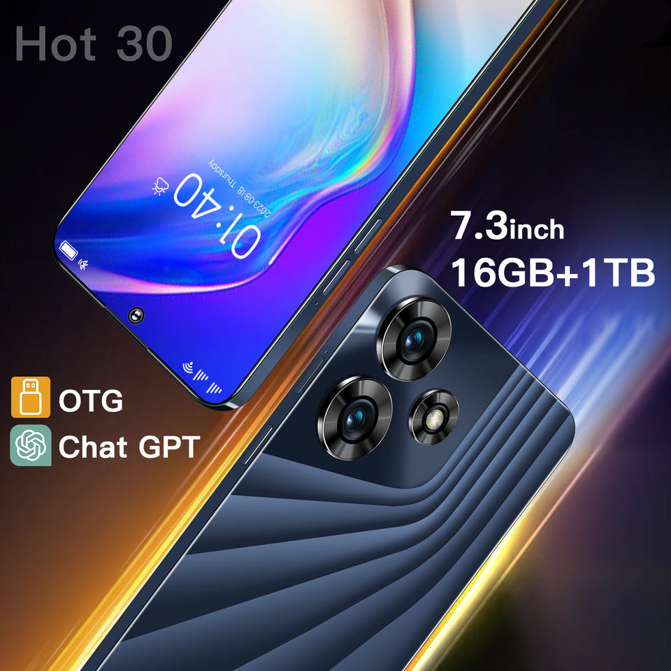 H30 Teléfono inteligente 7,3 pulgadas Pantalla completa LTE Celular Android 13 con idioma francés 16GB + 1TB Hot30 Oferta