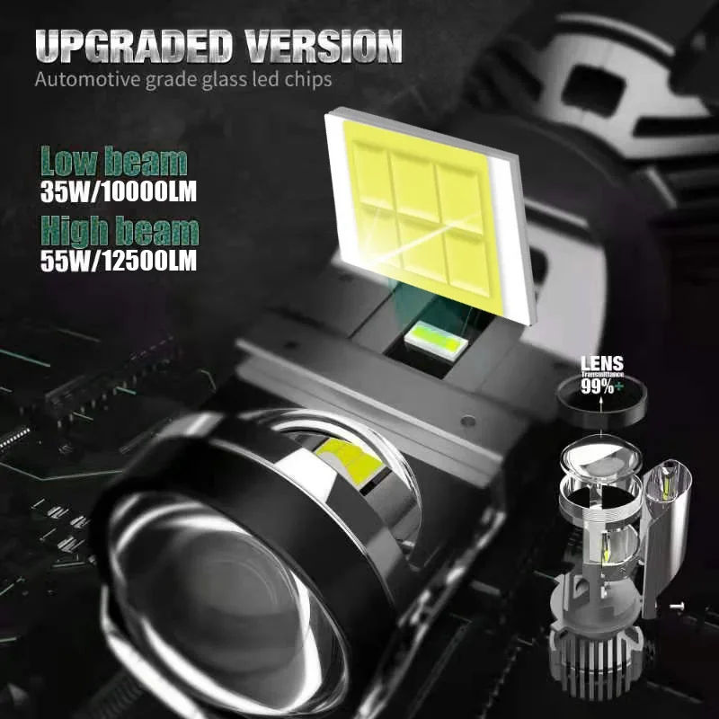 H4 9003 CANbus lente Mini proyector LED faro bombillas 55W 11000LM 6000K HB2 led bombilla Xenón para motocicleta